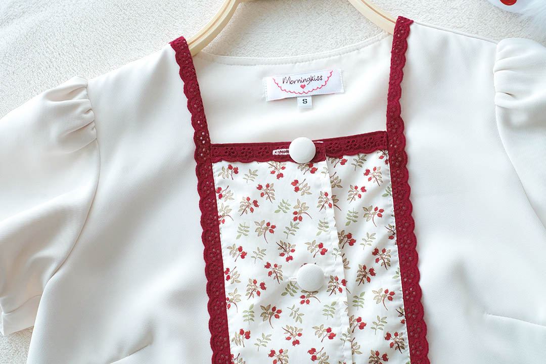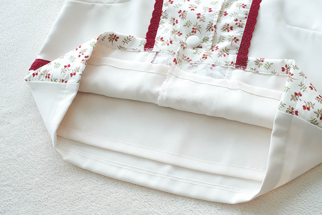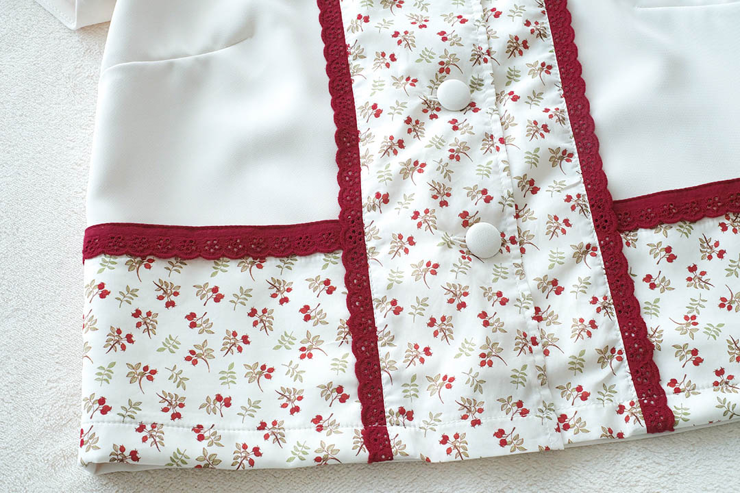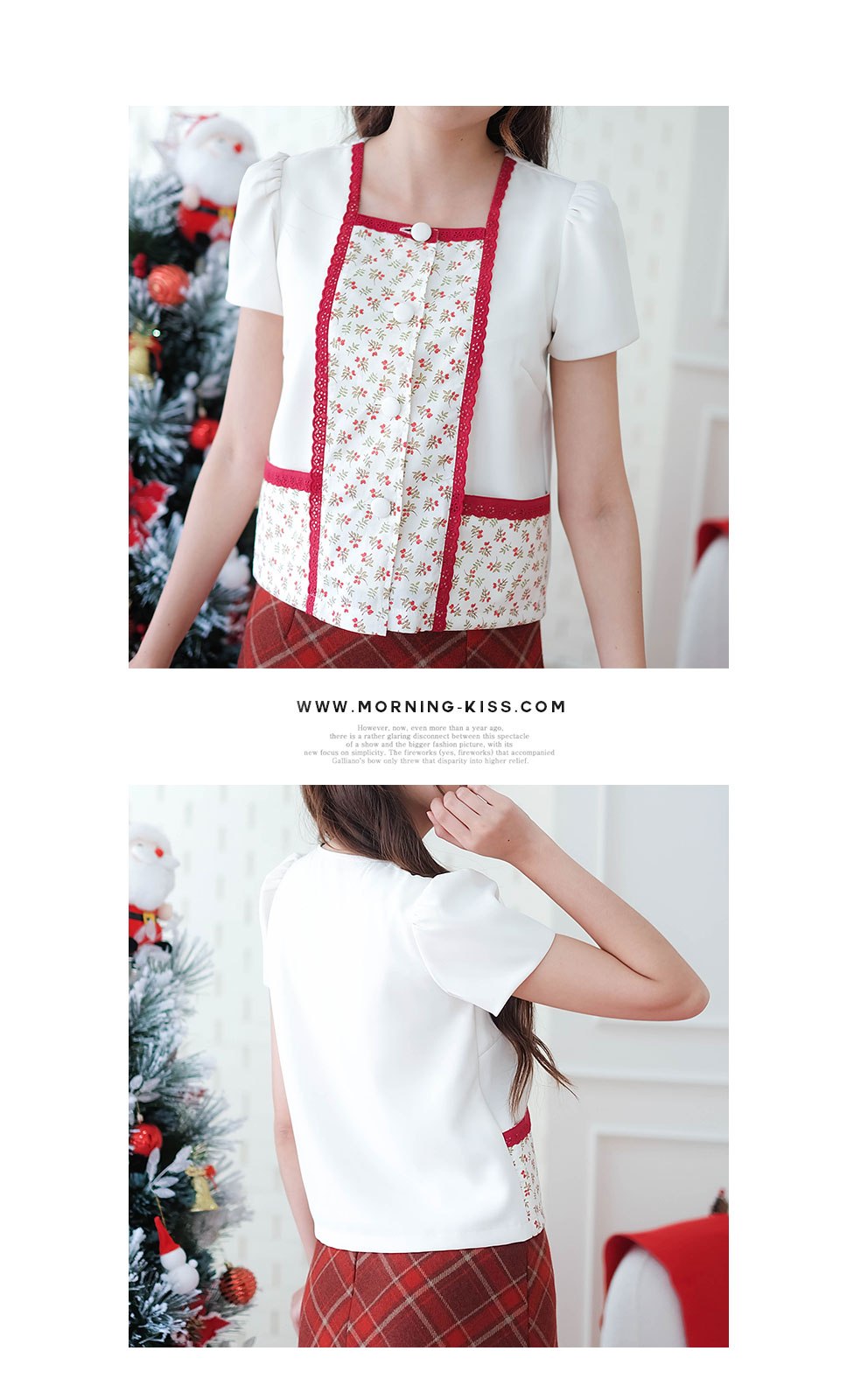 เสื้อแขนสั้นโทนสีครีมทรงคอเหลี่ยม สลับลายผ้าได้อย่างลงตัว ด้านหน้าและกระเป๋าเป็นผ้าลายดอกเล็กๆน่ารักๆ แต่งด้วยเทปลูกไม้ดีแดงเก๋ๆ มีซับใน ใส่ทำงานก็ได้ใส่เที่ยวก็น่ารัก รายการนี้แนะนำเลย งานสวยมากจริงๆไม่อยากให้พลาดเลย ใส่เที่ยว ใส่ทำงานได้ทุกโอกาส