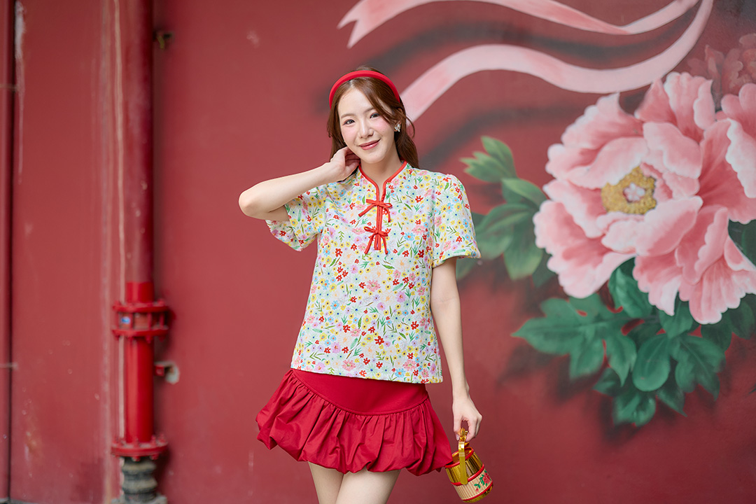 เสื้อแขนสั้นโทนสีครีมทรงคอเหลี่ยม สลับลายผ้าได้อย่างลงตัว ด้านหน้าและกระเป๋าเป็นผ้าลายดอกเล็กๆน่ารักๆ แต่งด้วยเทปลูกไม้ดีแดงเก๋ๆ มีซับใน ใส่ทำงานก็ได้ใส่เที่ยวก็น่ารัก รายการนี้แนะนำเลย งานสวยมากจริงๆไม่อยากให้พลาดเลย ใส่เที่ยว ใส่ทำงานได้ทุกโอกาส
