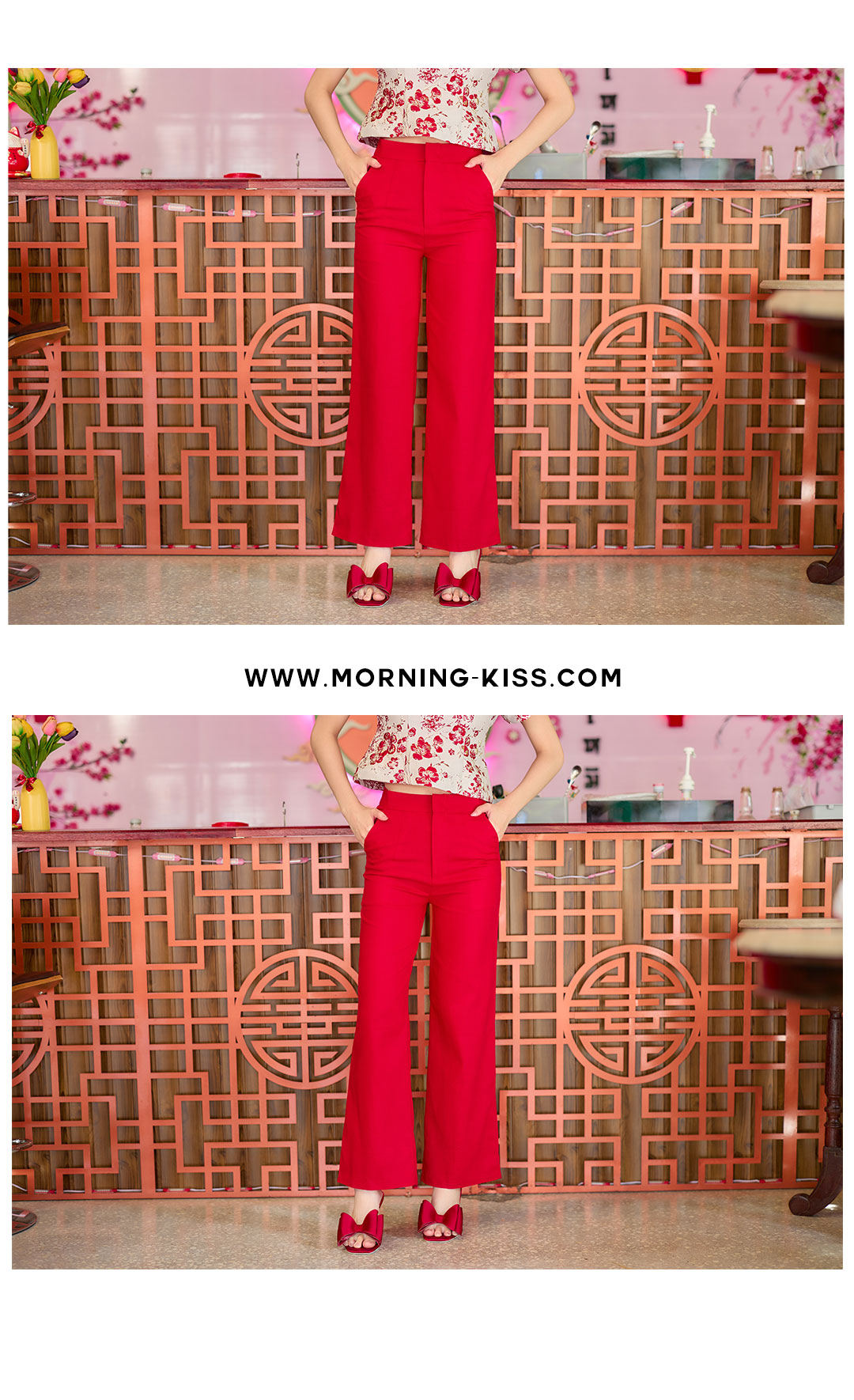Must have ไอเท็มแนะนำ ของดีไม่พูดเยอะ กางเกงขากระบอกใหญ่สีแดง รุ่นนี้เป็นเนื้อผ้า Cotton ผสมลินิน ทรงเอวสูง เอวฟิคซิปซ่อนหน้า ใส่แมทกับเสื้อคอจีนเข้ากันสุดๆ เข้าได้กับทุกสไตส์ ซื้อได้ใช้งานคุ้มๆแน่นอน