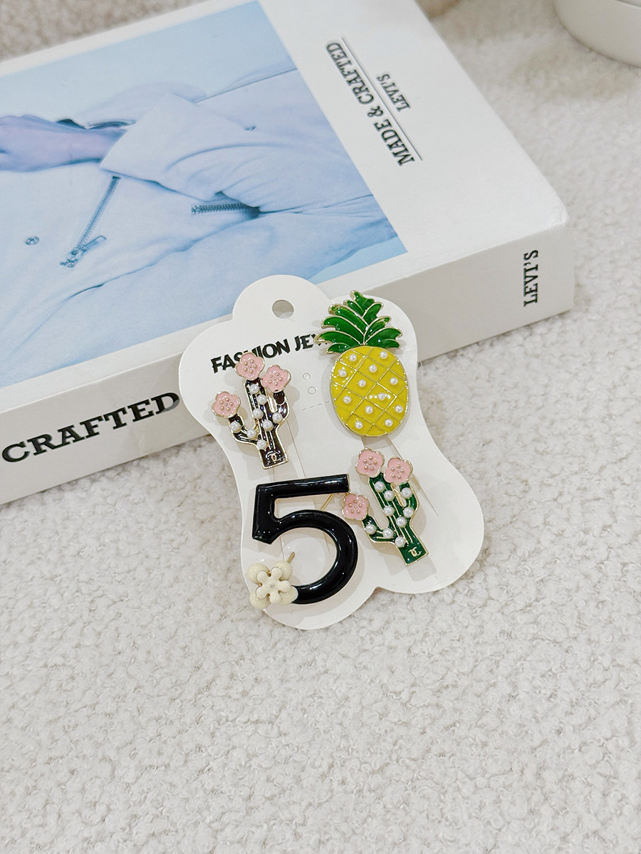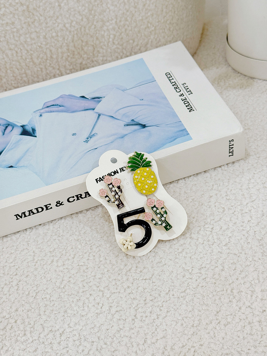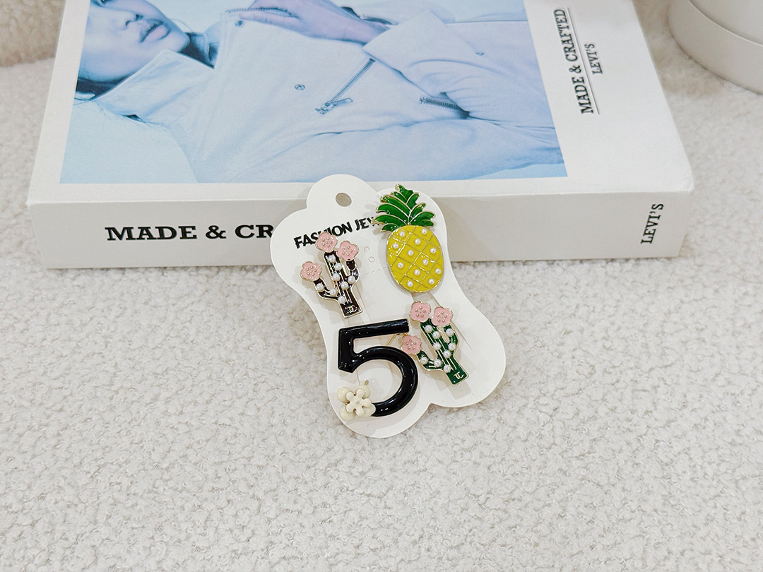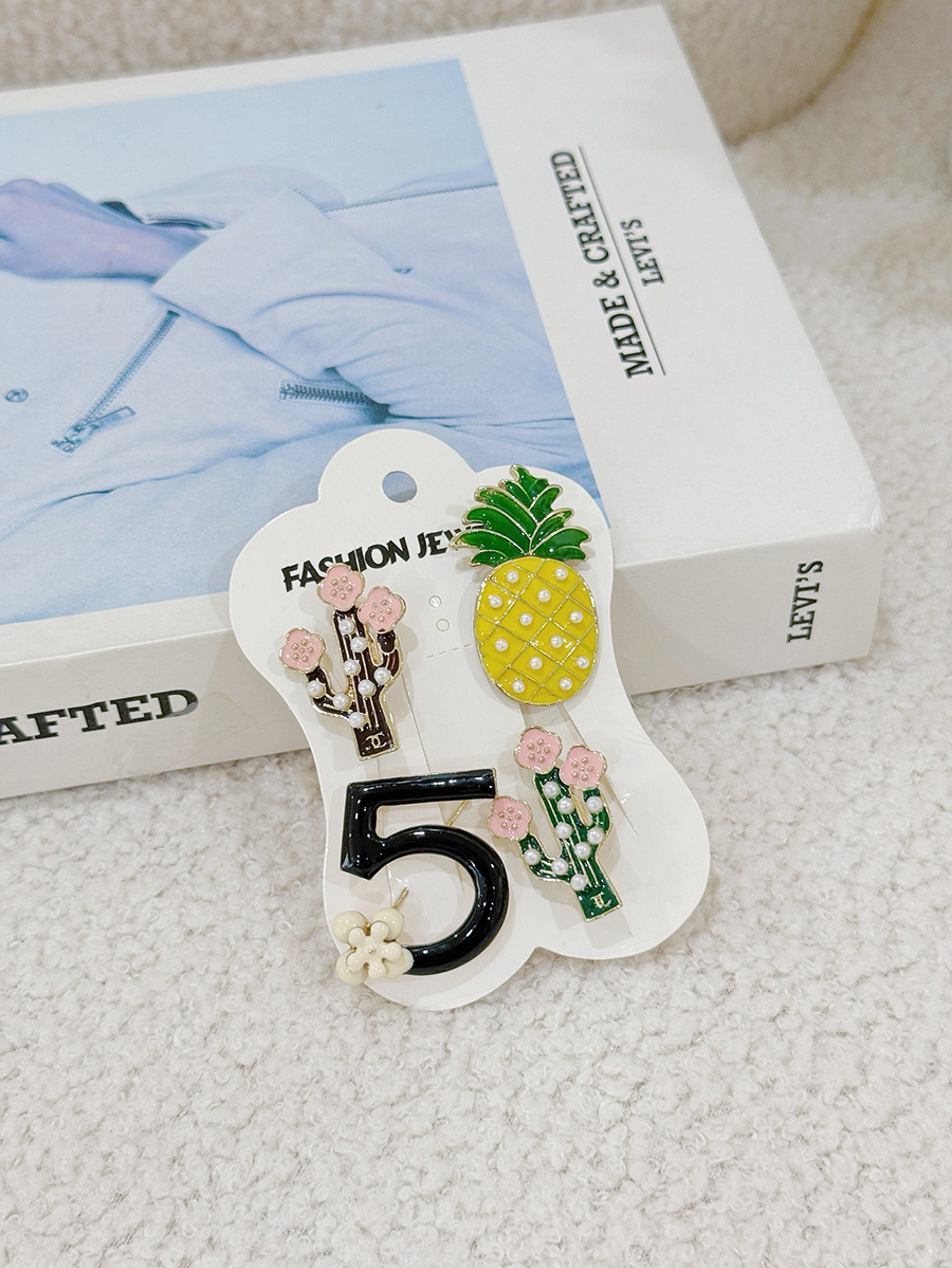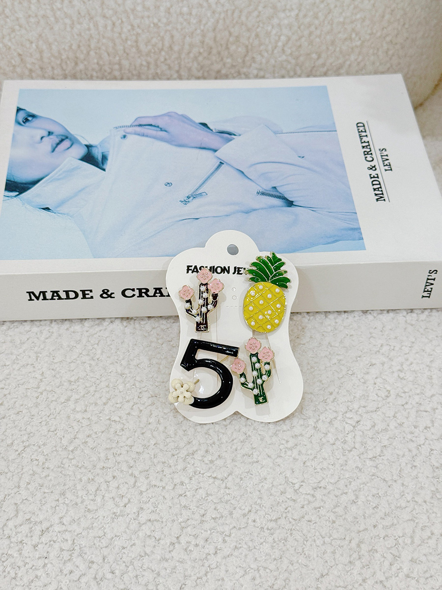 เข็มกลัดเซ็ตสุดน่ารักที่มาพร้อมดีไซน์หลากหลาย! ทั้งสับปะรดสีเหลืองสดใส, ต้นกระบองเพชรดอกชมพูเก๋ๆ, หรือเลข 5 สีดำสุดเท่พร้อมดอกไม้เล็กๆ ใครที่ชอบไอเทมเพิ่มความสนุกให้ชุดต้องมีเซ็ตนี้ติดไว้เลย จะติดกระเป๋า เสื้อผ้า หรือหมวกก็ดูเก๋ไม่ซ้ำใครแน่นอน!