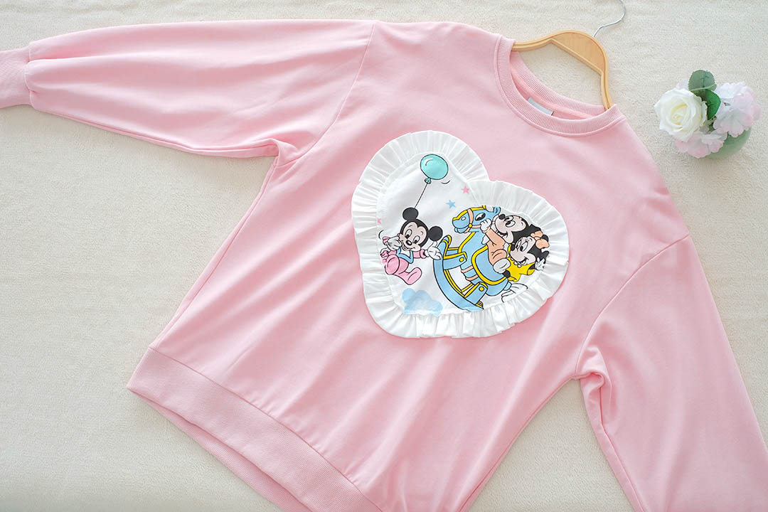 เสื้อสเวตเตอร์สุดคิ้วท์ใส่แล้วน่ารักแบบตะโกนสีชมพูละมุนๆดีไซน์ไม่ซ้ำใครตรงกลางเป็นลายสกรีน Mickey Mouse และ Minnie Mouse สุดคิ้วท์อยู่ในกรอบหัวใจสีขาวที่มีระบายลูกไม้ล้อมรอบตัวเสื้อเป็นทรง Oversize ใส่สบาย เนื้อผ้านุ่มนิ่ม ใส่ได้หลายโอกาส จะใส่ไปเที่ยวชิลล์ๆหรือใส่ในห้องแอร์ก็คือได้หมด ใส่คู่กับกางเกงยีนส์ขายาวหรือกางเกง Jogger ก็ได้ลุคสบายๆ ช้อปเลย รับรองว่าได้ไปแล้วจะเลิฟเลย