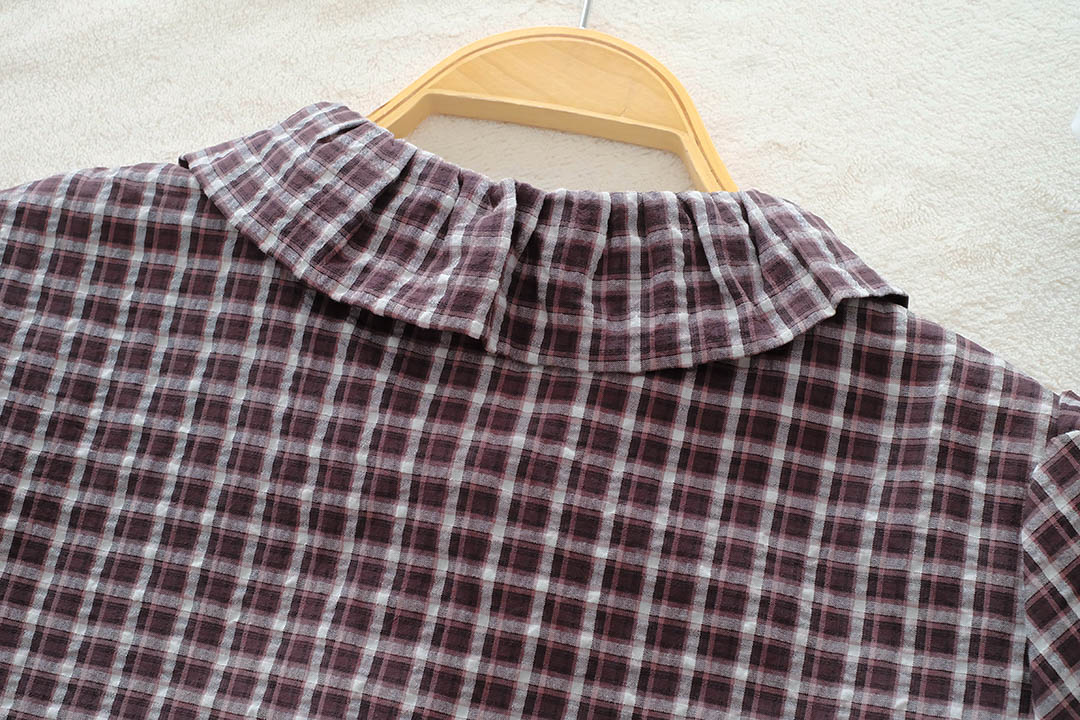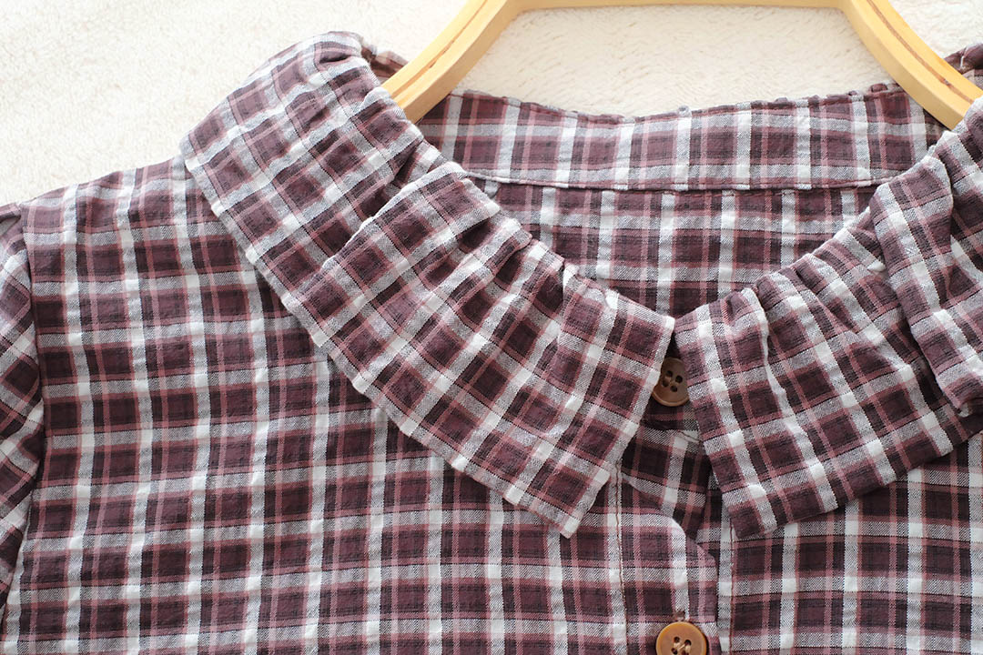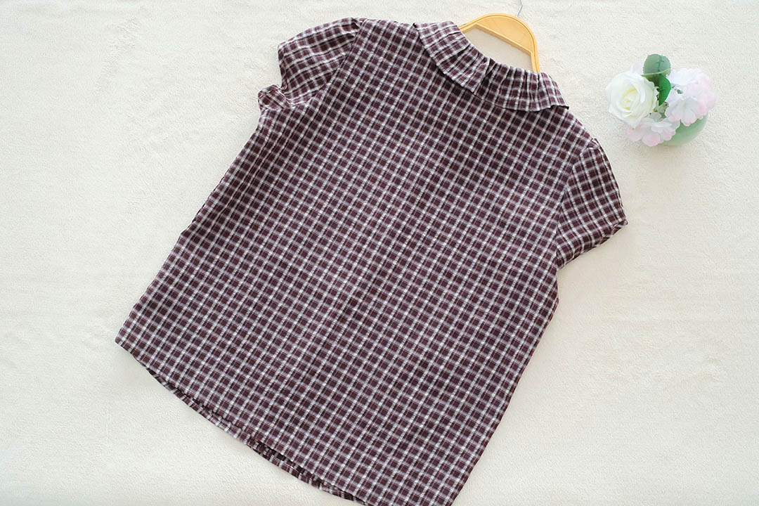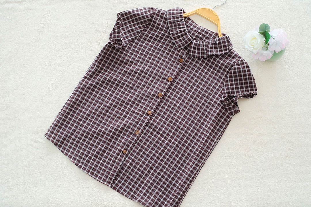 เสื้อลายตารางสุดคิ้วท์ ใส่แล้วน่ารักแบบตะโกนลายตารางสีน้ำตาลเข้ม-ขาวสุดคลาสสิกแต่มีดีไซน์ไม่ธรรมดาเพราะมาพร้อมปก Peter Pan Collar สุดเก๋ทำให้เสื้อดูน่ารักแบบคุณหนูสุดๆ กระดุมสีน้ำตาลเรียงหน้าก็เข้ากันกับสีเสื้อสุดๆ และช่วงแขนสั้นพอดีๆ ทำให้ใส่สบาย ไม่ร้อน จะใส่ไปเที่ยวคาเฟ่ ไปออกเดท หรือไปเดินเล่นชิลล์ๆ ก็คือได้หมด แมตช์กับกระโปรงยีนส์สั้นสีขาวกางเกงยีนส์ขายาวตัวโปรด กจะได้ลุคที่ดูสบายๆ ใครกำลังหาเสื้อตัวโปรด ต้องจัดตัวนี้เลย ไม่ผิดหวังแน่นอน