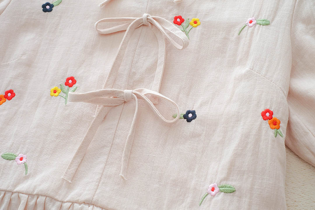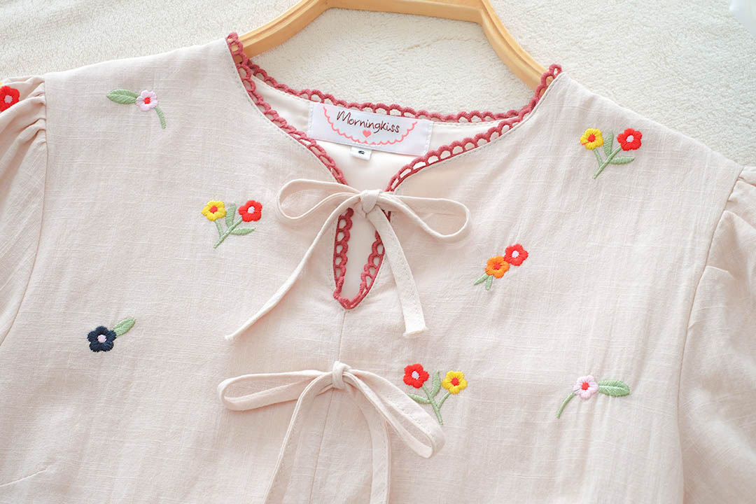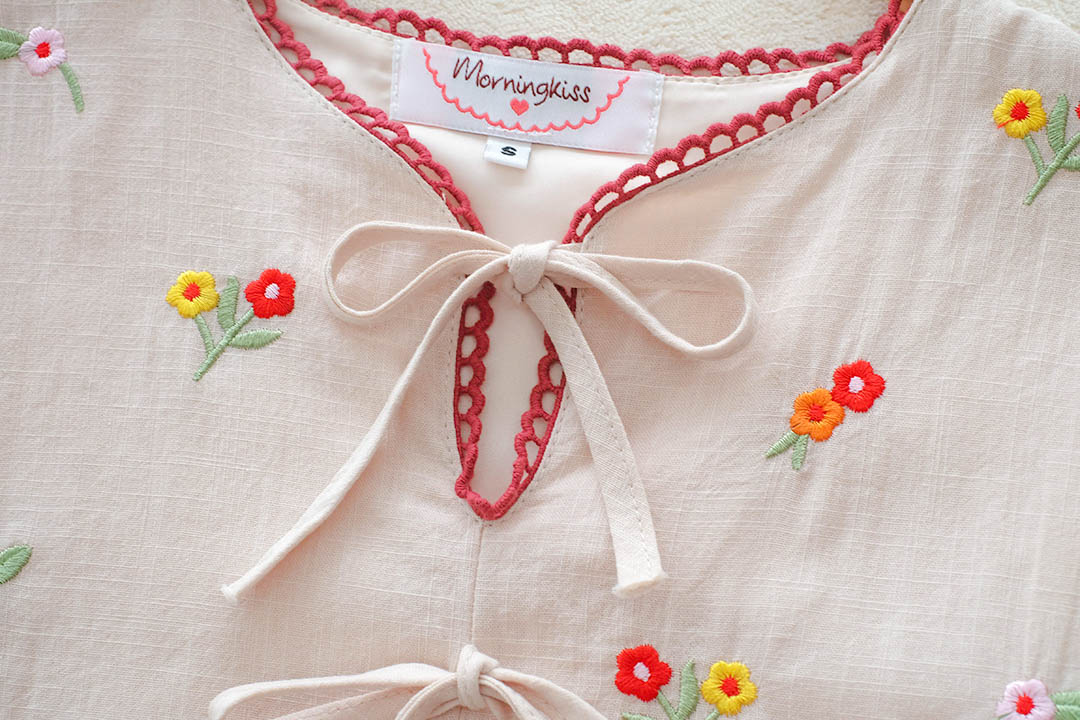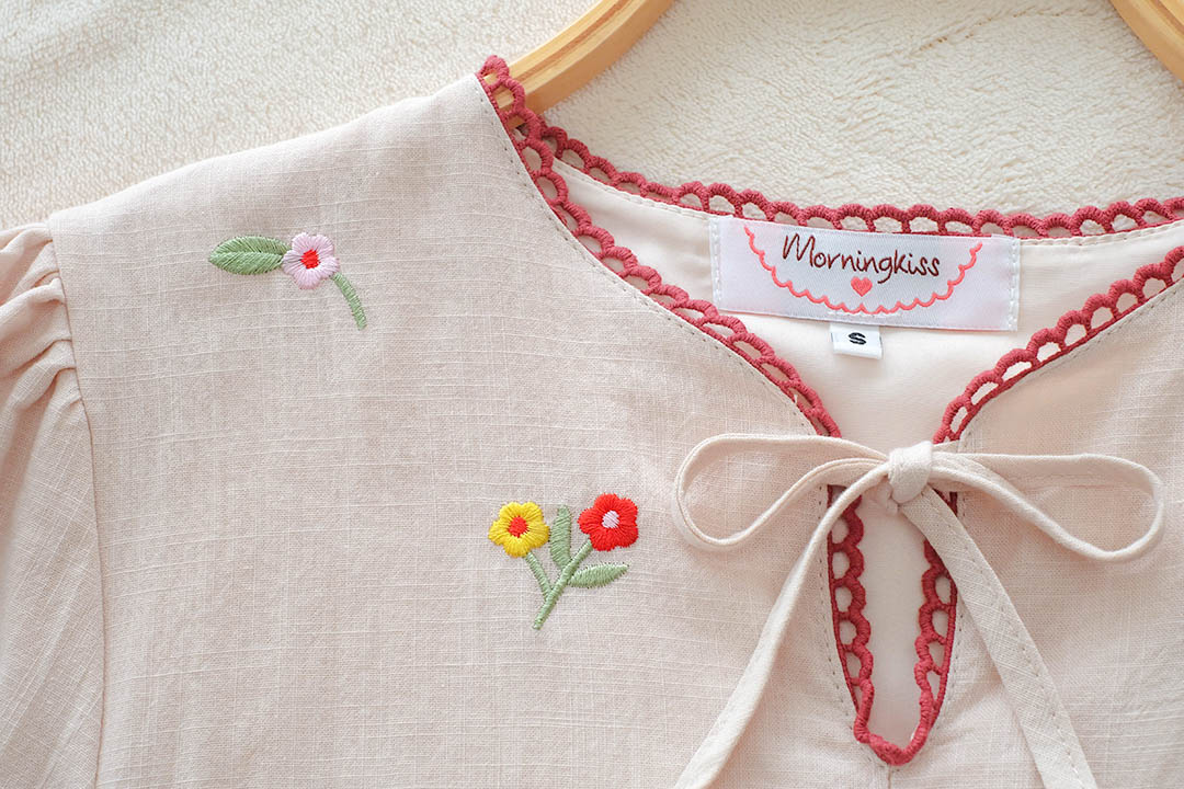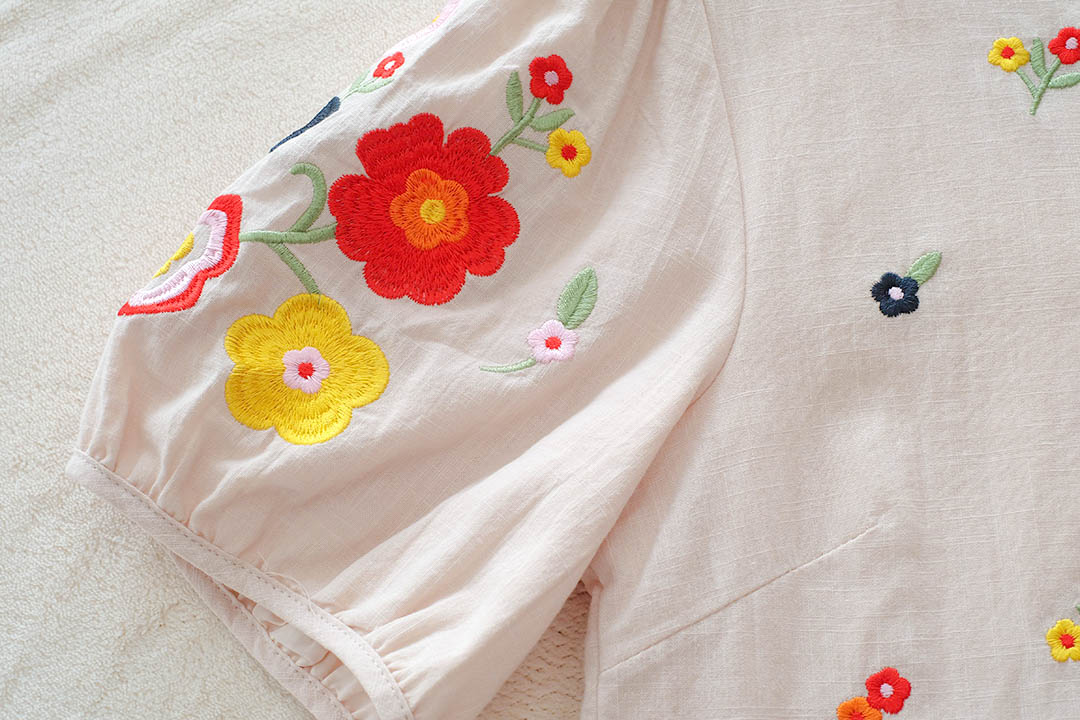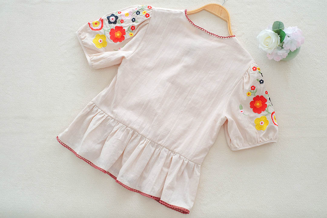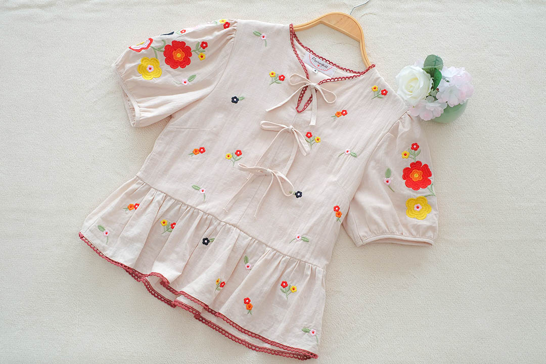 เสื้อปักลายดอกไม้สไตล์วินเทจสุดคิ้วท์สีเบจละมุนๆที่มีดีเทลปักลายดอกไม้สีสันสดใส ทั่วทั้งตัว บอกเลยว่างานละเอียดสุดๆมาพร้อมเชือกผูกโบว์ที่ช่วงคอและอก ช่วงแขนพองๆนิดๆ ทรงเสื้อเป็นแบบ Peplum ที่มีระบายช่วงเอว ใส่แล้วดูมีสัดส่วน ช่วยพรางหุ่นให้ดูเพรียวขึ้นไปอีก มีซับในทั้งช่วงตัวและแขนใส่สบายไม่ระคายเคืองผิวและไม่ต้องกังวลเรื่องความบางเลย มีซิปซ่อนด้านข้าง จะใส่ไปทำงาน ไปค่าเฟ่ ไปเดินเล่นในห้าง ออกเดทหรือแมตช์กับกางเกงยีนส์ตัวโปรดก็คือจบได้ลุคที่ดูสบายๆ รับรองว่าได้ไปแล้วจะเลิฟเลย