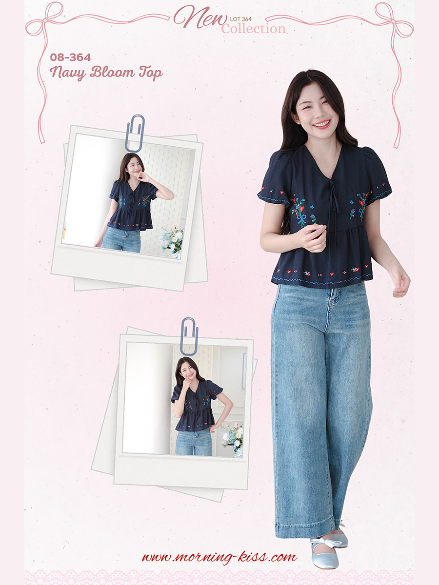 เสื้อดีไซน์เก๋ไม่ซ้ำใครสวยหวานซ่อนความชิคสีน้ำเงินเข้มที่มีดีเทลปักลายดอกไม้และโบว์สีสันสดใส ตรงกลางและชายเสื้อ คอวีมีเชือกผูกด้านหน้า ทรงเสื้อเป็นแบบ Peplum ที่มีระบายช่วงเอว ช่วยให้ใส่แล้วดูมีสัดส่วนและพรางหุ่นให้ดูเพรียวขึ้น ช่วงแขนพองๆนิดๆเพิ่มความน่ารัก จะใส่ไปคาเฟ่ เดินห้าง แมตช์กับกระโปรงยีนส์สั้นสีอ่อนก็จะได้ลุคที่ดูน่ารักสดใส บอกเลยว่าคุ้มเกินราคา ใครกำลังหาเสื้อตัวโปรด ต้องจัดตัวนี้เลย