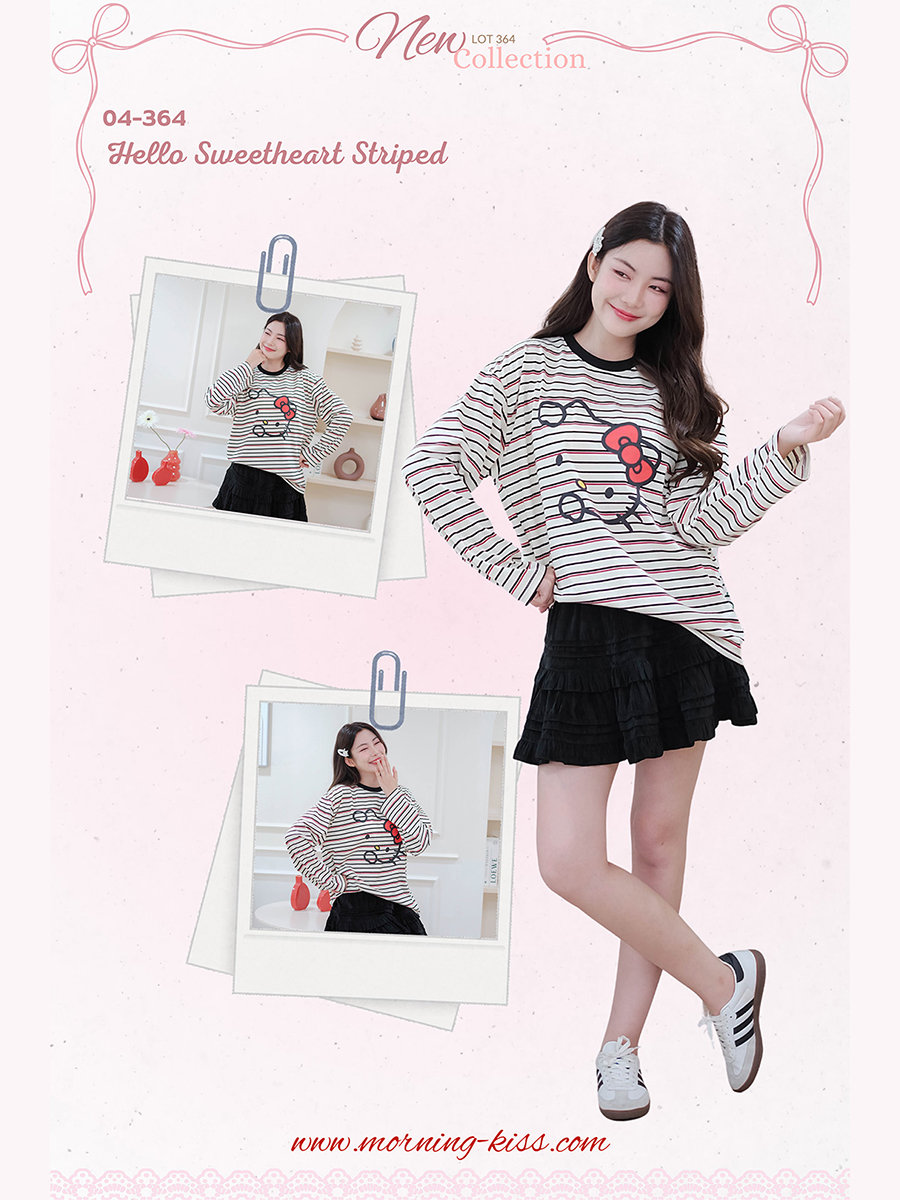 เสื้อแขนยาวสุดชิคสไตล์สตรีทลายทางสีครีมขาวตัดด้วยสีดำสุดคลาสสิก มีน้อง Hello Kitty ตัวใหญ่มาเพิ่มความคิ้วท์ ดีไซน์น้องคิตตี้แบบมินิมอลแต่ยังคงเอกลักษณ์ด้วยโบว์สีแดงคือปังมากตัวเสื้อเป็นทรง Oversize ใส่สบาย ไม่รัดรูป เนื้อผ้าดี ใส่ได้หลายโอกาส จะใส่ชิลล์ๆหรือใส่ในห้องแอร์ก็เหมาะสุดๆ ดีเทลคิ้วท์ๆแบบนี้คือของจริง ใส่เมื่อไหร่ก็ดูดี รีบตำเลยค่ะ