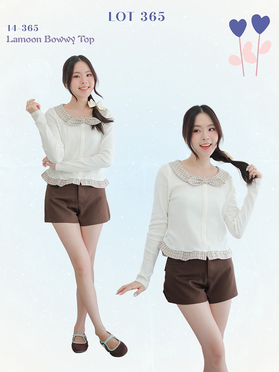 เสื้อสุดคิ้วท์สไตล์คุณหนูดีเทลแน่นไม่ซ้ำใคร แขนยาวตัวนี้คือน่ารักมากเป็นเสื้อสีขาวเรียบๆที่มีดีเทลสุดเก๋ปกเสื้อและระบายชายเสื้อเป็นลายสก็อตสีน้ำตาล-ขาวสุดคลาสสิก ผูกโบว์ลายสก็อตตรงกลางคอเสื้อคือเพิ่มความน่ารัก ทรงเสื้อ เข้ารูปสวยงาม ช่วงชายเสื้อมีระบายเล็กๆทำให้ดูน่ารักขึ้นไปอีก แต่งกระดุมหลอกเรียงหน้า ลุคคุณหนูจะแมตช์กับกระโปรงสั้นสีดำ/สีน้ำตาล ลุคชิคๆใส่คู่กับกางเกงยีนส์เอวสูงตัวโปรดก็ดูดีมีสไตล์ไปอีกแบบ ใส่ไปคาเฟ่ ไปเที่ยว ไปทำงานหรือออกเดทเบาๆ สวยหวานละมุนแบบนี้ ไม่มีไม่ได้แล้วนะ!