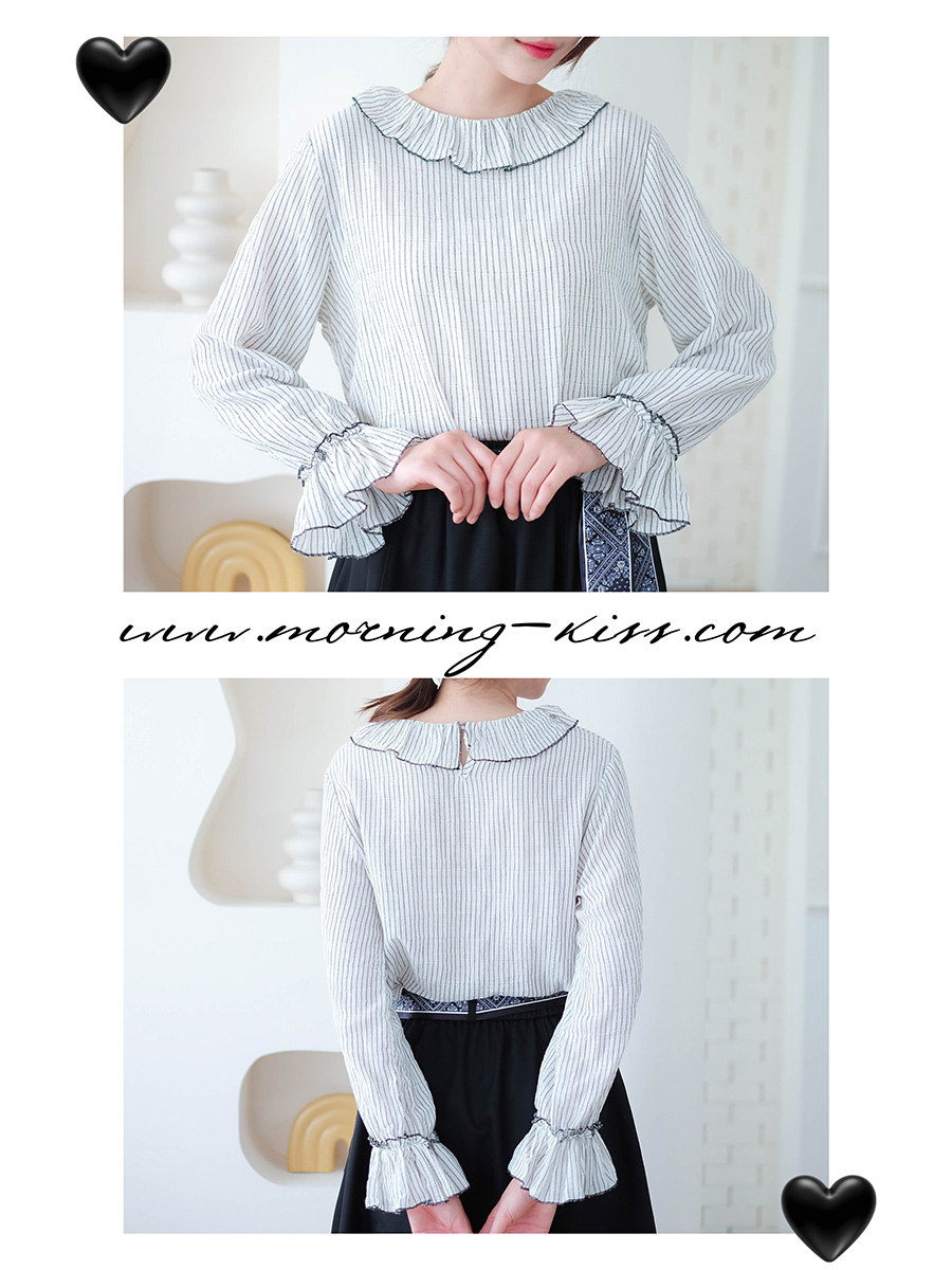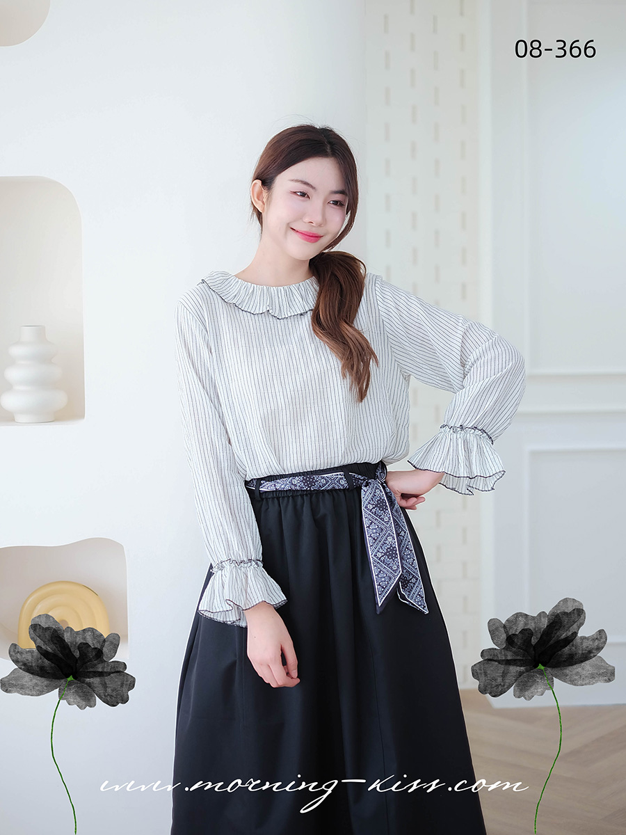 เสื้อแขนยาวตัวนี้คือที่สุดของความชิคที่มาพร้อมดีเทลน่ารักๆ มาในลายทางสีขาว-เทาดำสุดคลาสสิก คอเสื้อแต่ง ระบายลูกไม้สุดหวานมีขอบสีเข้มเล็กน้อยทำให้เสื้อดูมีมิติ แขนเสื้อทรงพองนิดๆใส่สบายปลายแขนมีระบายเป็นชั้นๆ สุดคิ้ว แมตช์กับกระโปรงสั้น/ยาวสีดำหรือกระโปรงยีนส์ก็จะได้ลุคที่ดูหวานละมุน ไปเที่ยว ไปทำงาน ไอเท็มนี้คือต้องมีติดตู้ ไม่ผิดหวังแน่นอน