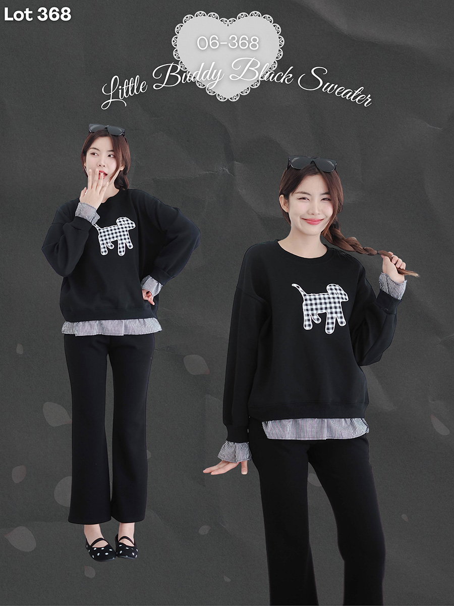 ไอเท็มที่ไม่ควรพลาดดีไซน์ 2-in-1 กับเสื้อแขนยาวสีดำตัวนี้คือที่สุดของความ Casual Fun ที่สาวๆต้องมี ดีไซน์เลเยอร์ชายเสื้อและปลายแขนเย็บต่อผ้าลายหมากรุกที่มีระบายเล็กน้อยทำให้เหมือนใส่เสื้อ 2 ชั้นดูมีลูกเล่นและเก๋สุดๆงานเย็บลายน้องหมาทรงคิ้วท์ลายตารางหมากรุกขาว-ดำคือโดดเด่นมาก เป็นทรงหลวมๆ ใส่สบายมาก เหมาะกับลุคสตรีทหรือลุคชิลล์ๆ ใส่คู่กับกระโปรงสั้นสีดำ ก็จะได้ลุคที่ดูน่ารักสดใส ใส่ไปไปคาเฟ่ ไปเที่ยว หรือใส่ในวันสบายๆ ที่อากาศเย็น ใส่ตัวเดียวจบ ใครเป็นทาสน้องหมาและสายคิ้วท์ต้องรีบ CF
