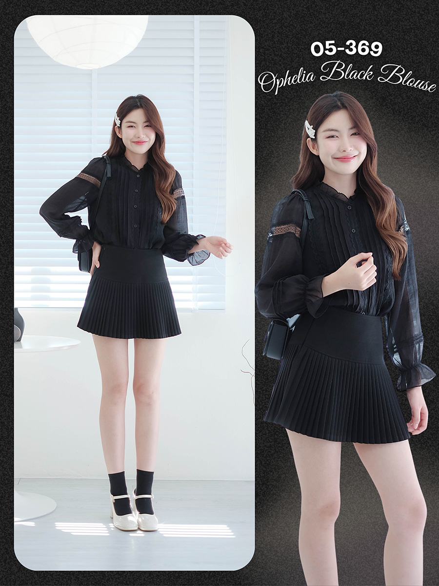 Attention Please! นี่คือเสื้อที่'ดีไซน์จึ้ง'ใส่แล้วไม่ซ้ำใครแน่นอน เสื้อแขนยาวสีดำ คอเสื้อเป็นทรงคอตั้งพร้อม ระบายเล็กๆดูสุภาพและอ่อนหวานมากๆ ดีเทลจับจีบเล็กแนวตั้งที่ด้านหน้าเสื้อสลับกับแถบลูกไม้ถักให้ลุควินเทจและ หรูหรา แขนยาวพองๆนิดๆปลายแขนรูดสม็อกเพิ่มความ Romantic ให้ลุค มีซับในช่วงต้ว กระดุมเรียงหน้า แมตช์ง่ายใส่กับกระโปรงกางเกงคือได้หมด พร้อมส่งความหรู เสื้อตัวเดียวเอาอยู่ทุกอีเวนต์สำคัญ เพราะดีไซน์แน่นมาก! ใครชอบดีเทลสุดละเอียดต้องจัด!ตำค่ะ!