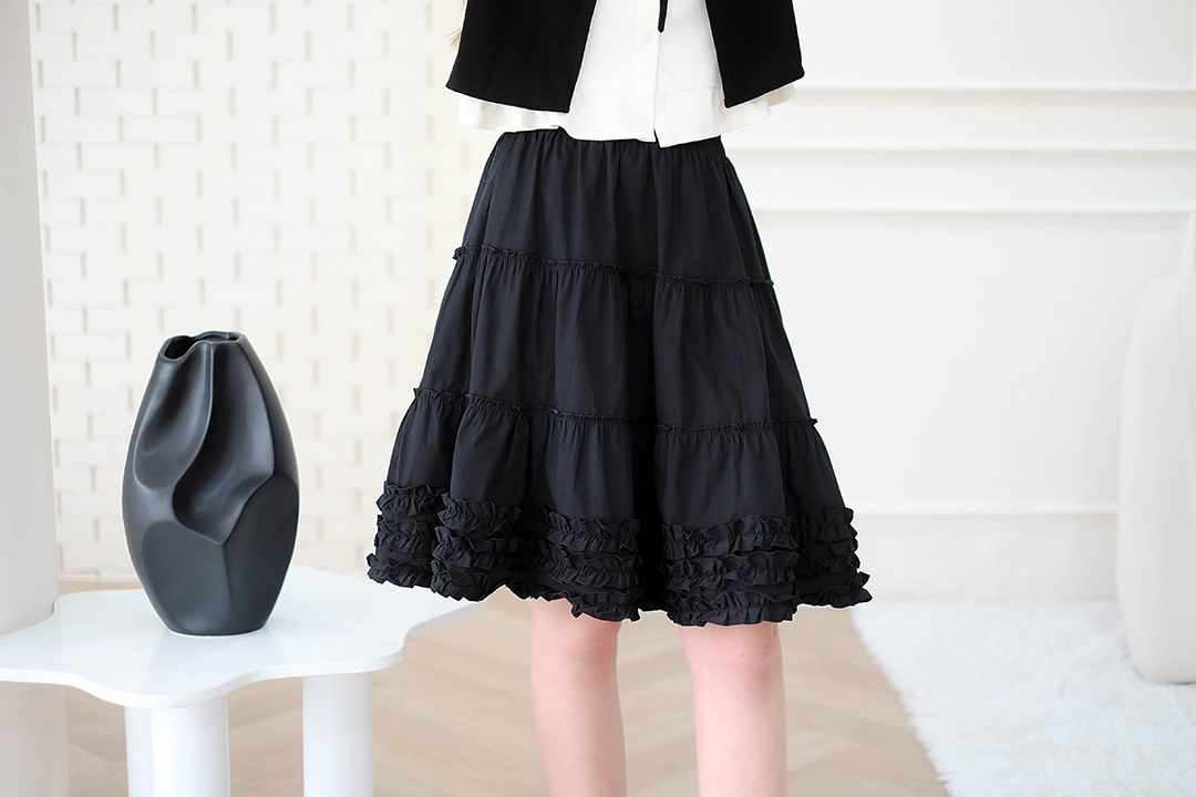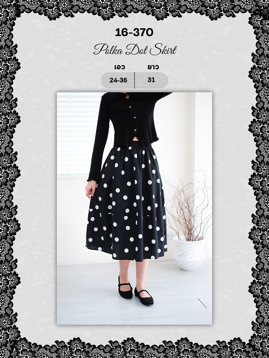 Must-Have Item กระโปรงยาวสีดำลายจุดขาวมาในโทนดำ-ขาว สไตล์ยุค50sที่กลับมาอินเทรนด์อยู่เสมอ ทรงกระโปรงเป็นแบบ A-Line ปล่อยยาวทำให้ใส่แล้วดูสูงโปร่งและขาเรียวยาว มีกระเป๋า 2 ข้างซ้าย/ขวา เอวยางยืดใส่สบาย ไม่อึดอัดแน่นอน มีซับใน แมตช์กับเสื้อเชิ้ตสีขาวเข้ารูปหรือเสื้อเบลาส์แขนพองได้ลุควินเทจคิ้วท์ๆ ใส่ไปเที่ยวสบายตัวและได้ลุคที่ดูมีชีวิตชีวา ใส่เป็น Everyday Look หยิบมาใส่เมื่อไหร่ก็ปัง ต้องจัดด่วน