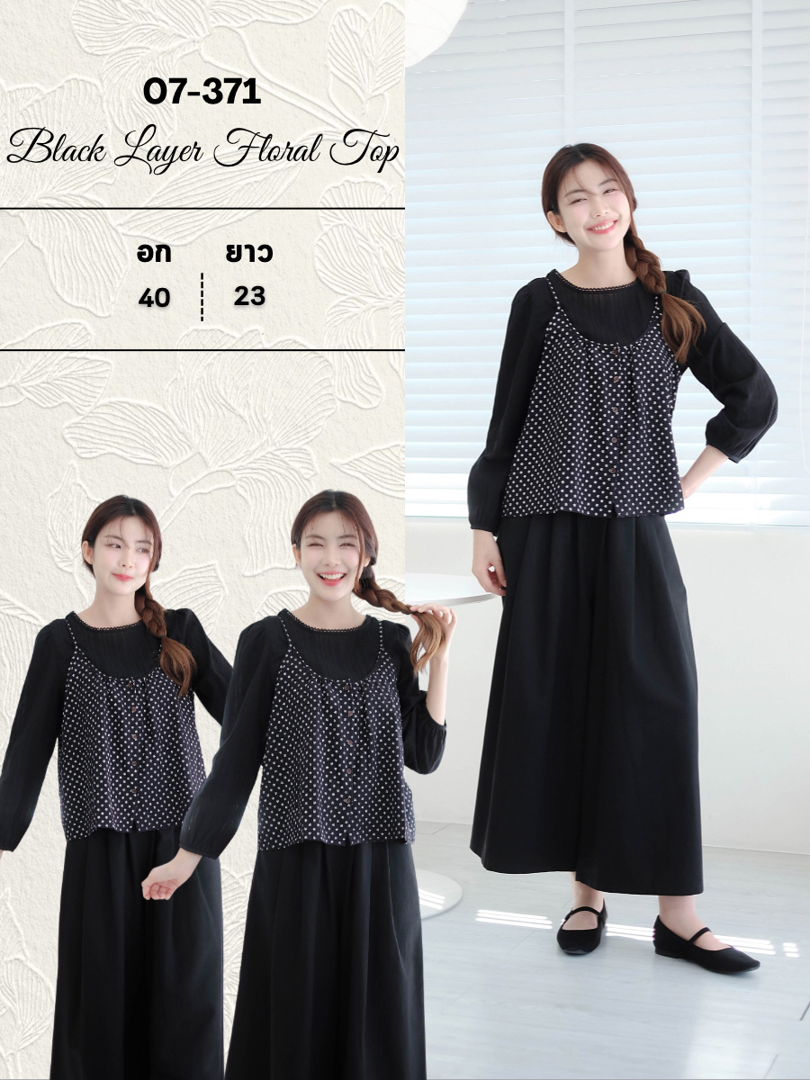 เสื้อ'Layered Look'สวยจบในตัวเดียว ดีไซน์ 2-in-1 เสื้อเย็บติดกันทำให้ได้ลุคใส่เสื้อสายเดี่ยวลายดอกไม้ทับเสื้อแขนยาวสีดำ เสื้อตัวในเป็นแขนยาวสีดำ ช่วงคอแต่งด้วยผ้าลูกไม้เล็กๆ เนื้อผ้ามีลายเส้นเล็กๆรอบตัวเนื้อผ้าแบบมี texture ในตัว เย็บติดกับเสื้อสายเดี่ยวลายดอกสีขาว กระดุมเรียงหน้า จะแมตซ์กับกางเกงหรือกระโปรงก็ได้ จะใส่ไปทำงาน ไปเที่ยว ไปคาเฟ่หรือถ่ายรูปเก๋ๆ ได้ลุคที่ดูละมุนและมีดีเทลไม่ซ้ำใคร พร้อมส่งความน่ารักในดีไซน์ที่คิดมาให้แล้ว ไอเท็มสุดคุ้มที่ต้องมีติดตู้!