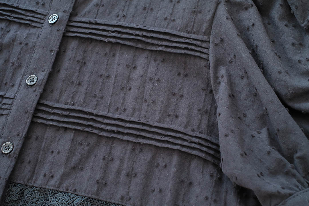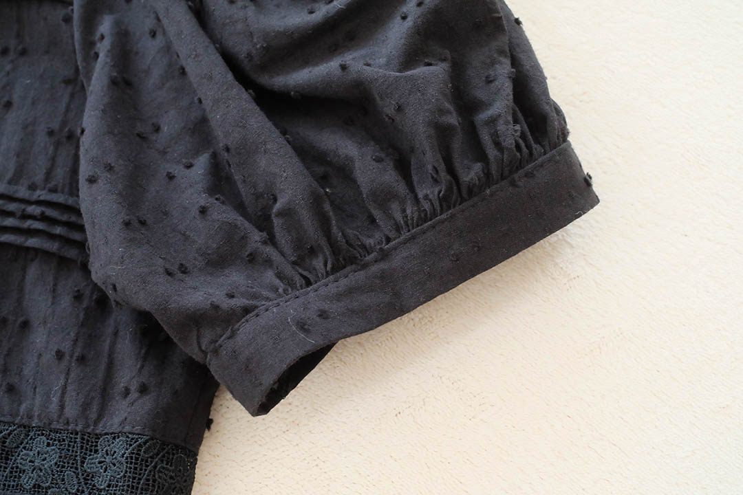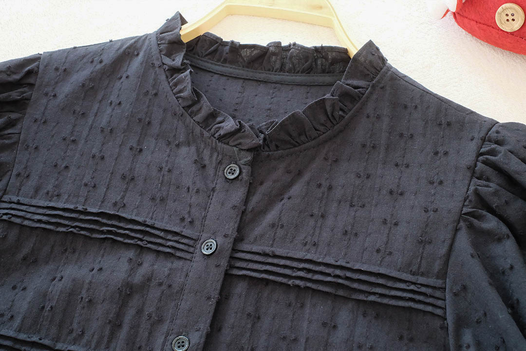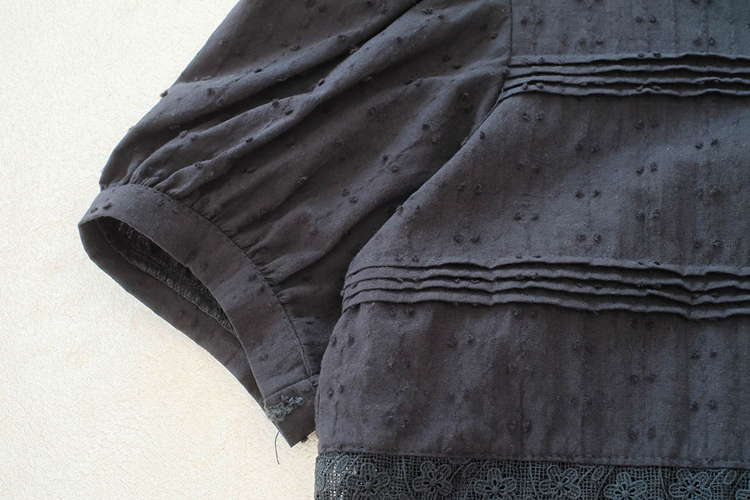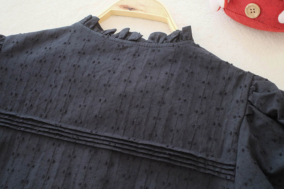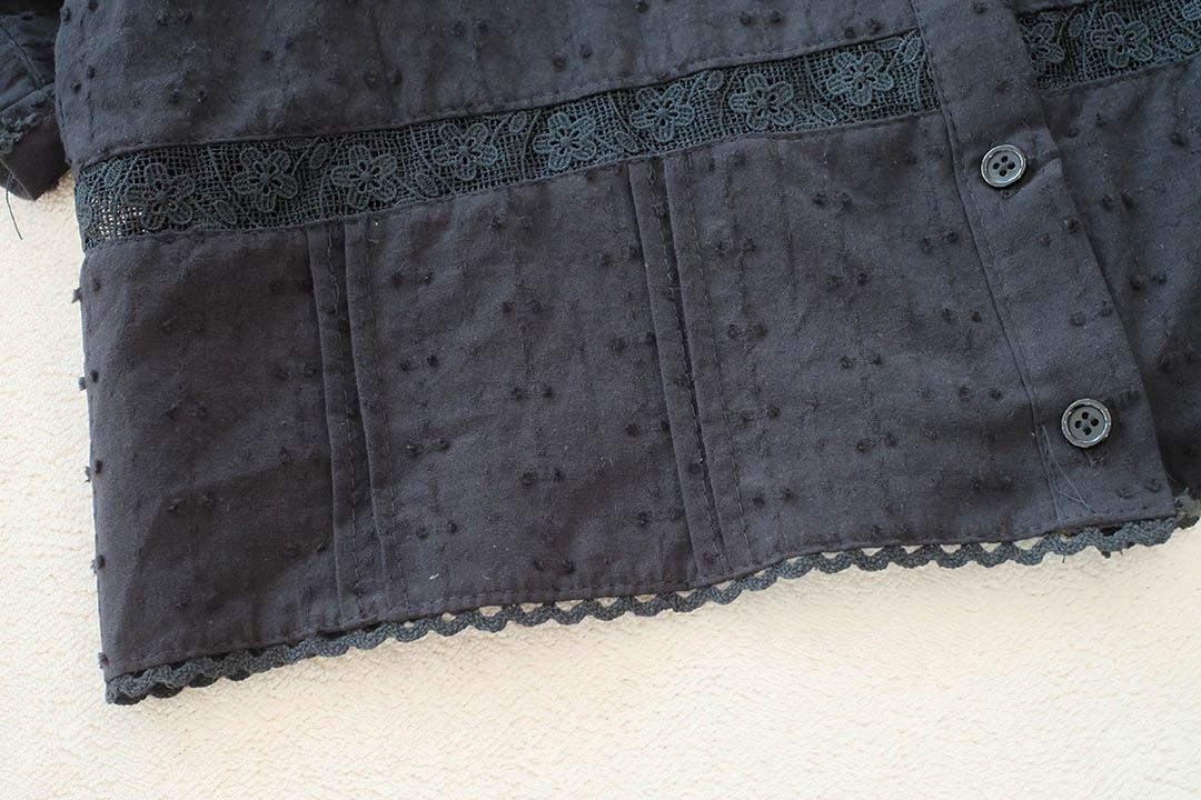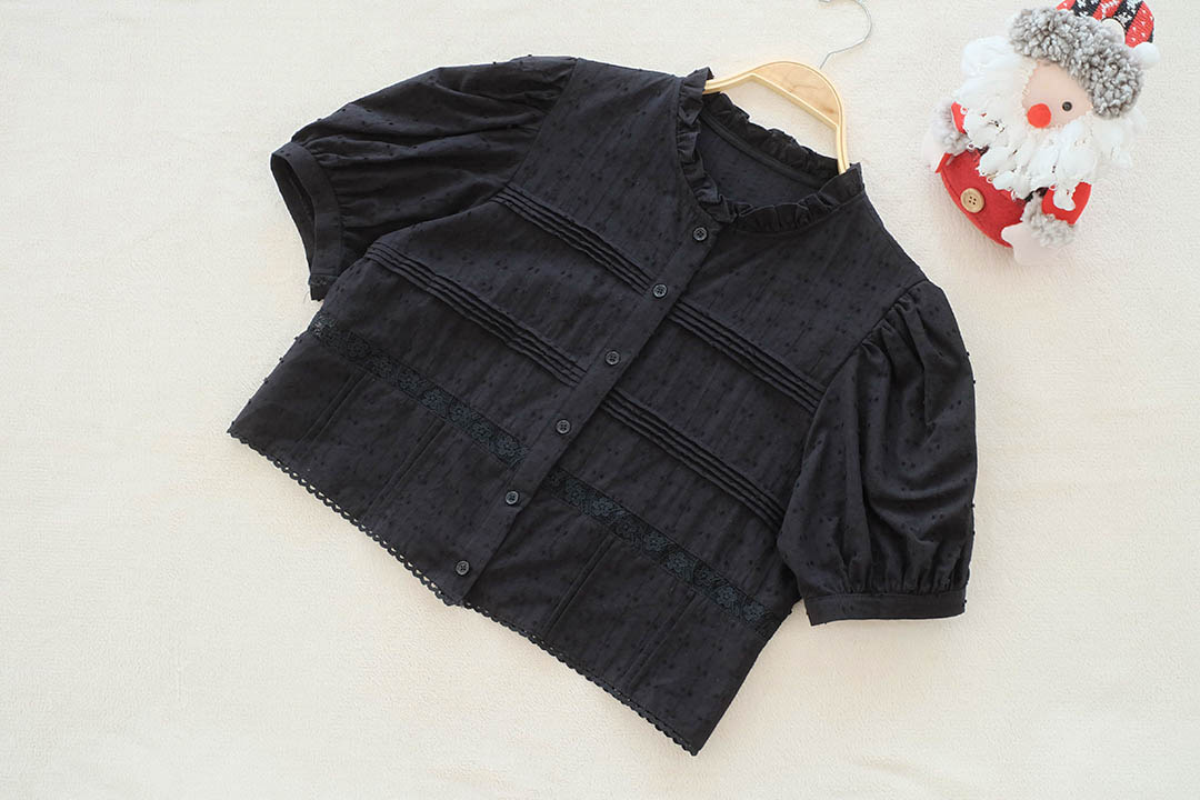 สวยสับระดับสิบ! ลุควินเทจโก้ๆ ใครชอบงานดีเทลแน่นๆ ต้องตัวนี้เลย เสื้อแขนตุ๊กตาสีดำสุดคลาสสิก ที่ใส่แล้วดู 'ผู้ดี'มากกกกไฮไลท์คืองานจับจีบตีเกล็ดแน่นๆทั่วตัวผสมผสานกับงานฉลุลูกไม้ลายสวยที่ช่วงเอวและชายเสื้อ ทำให้เสื้อสีดำดูมีมิติ ไม่เรียบและไม่จม เพิ่มความหวานด้วยคอปกตั้งระบายเล็กๆ และผ้ามีเทกซ์เจอร์ลายจุดในตัว คือสวยแพงเกินราคาไปมาก กระดุมเรียงหน้า จะใส่ไปทำงานก็ดูโปร หรือใส่เที่ยวก็ดูมีสไตล์ แมตช์ง่ายได้ทุกลุค ไอเท็มสีดำอมตะที่ต้องมีติดตู้ รีบจัดด่วนค่ะ