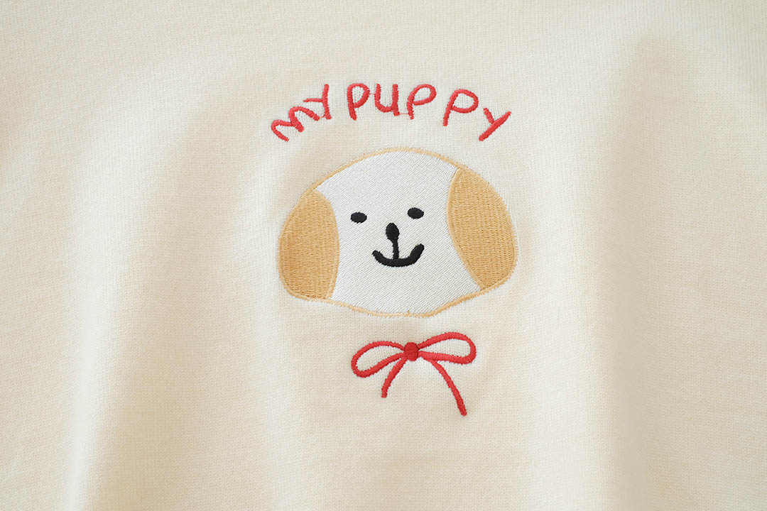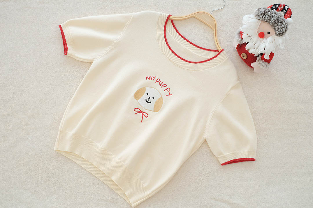 ใจละลายแล้วมั้ย!เสื้อแขนสั้นสีครีมนวลๆที่ความน่ารักกระแทกตาเต็มๆ!ไฮไลท์คือ'งานปักน้องหมาหน้าแป้น'ตรงกลางอกพร้อมข้อความ"my puppy"สีแดงดีเทลน้องหมาเป็นงานปักดูมีมิติแต่งโบว์เส้นเล็กน่ารักมาก ตัดขอบคอและแขนด้วยสีแดงเพิ่มความโดดเด่นและขับผิวให้ดูผ่อง เนื้อผ้าไหมพรมทอละเอียด นุ่มนิ่มใส่สบาย ไม่คันแน่นอน ทรงเสื้อจั๊มเอวและแขนเล็กน้อย ช่วยให้ดูหุ่นดี จะใส่ไปเรียนหรือไปเที่ยววันหยุดก็คอมพลีทลุคสดใสได้ง่ายๆแมตช์กับยีนส์หรือกระโปรงสั้นคือน่ารักสลบ ใครชอบงานโทนสีอบอุ่นแบบนี้ ต้องรีบรับน้องไปดูแลด่วนค่า!