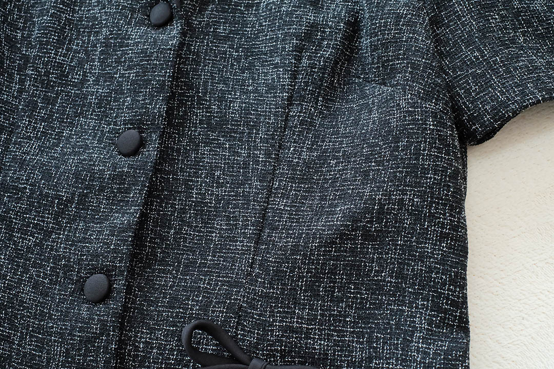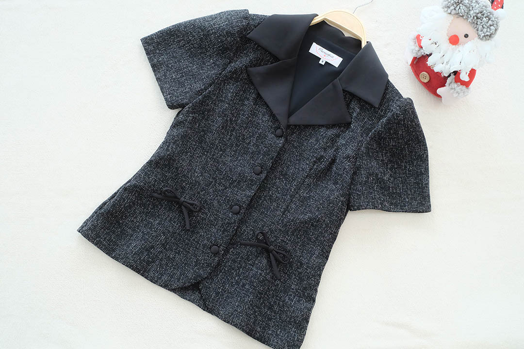 งานเป๊ะปังระดับสิบ ลูกคุณหนูต้องรุ่นนี้ เสื้อผ้าทวีตแขนสั้นโทนสีดำ-เทาที่ดูผู้ดีสุดๆ ดีเทลคอปกเชิ้ตสีดำตัดกับลายผ้าช่วยทำให้ช่วงคอดูเพรียวและโดดเด่น ไฮไลท์คือ'ดีเทลโบว์ช่วงเอว'ทั้งสองข้าง เพิ่มความหวานกรุบตัดกับความเท่ของผ้าทวีตได้อย่างลงตัว งานกระดุมหน้าเรียงสวย ผ้าทอแน่นมีน้ำหนักทิ้งตัวสวย ใส่สบายไม่คันแน่นอน จะแมตช์กับกางเกงยีนส์ก็ได้ลุคชิคๆ หรือใส่กับกางเกงสแล็คก็ดูโปรวัยทำงาน สวย แพง จบในตัวเดียว ไอเท็มนี้ใครช้าคือพลาดมาก ต้องจัดด่วน!