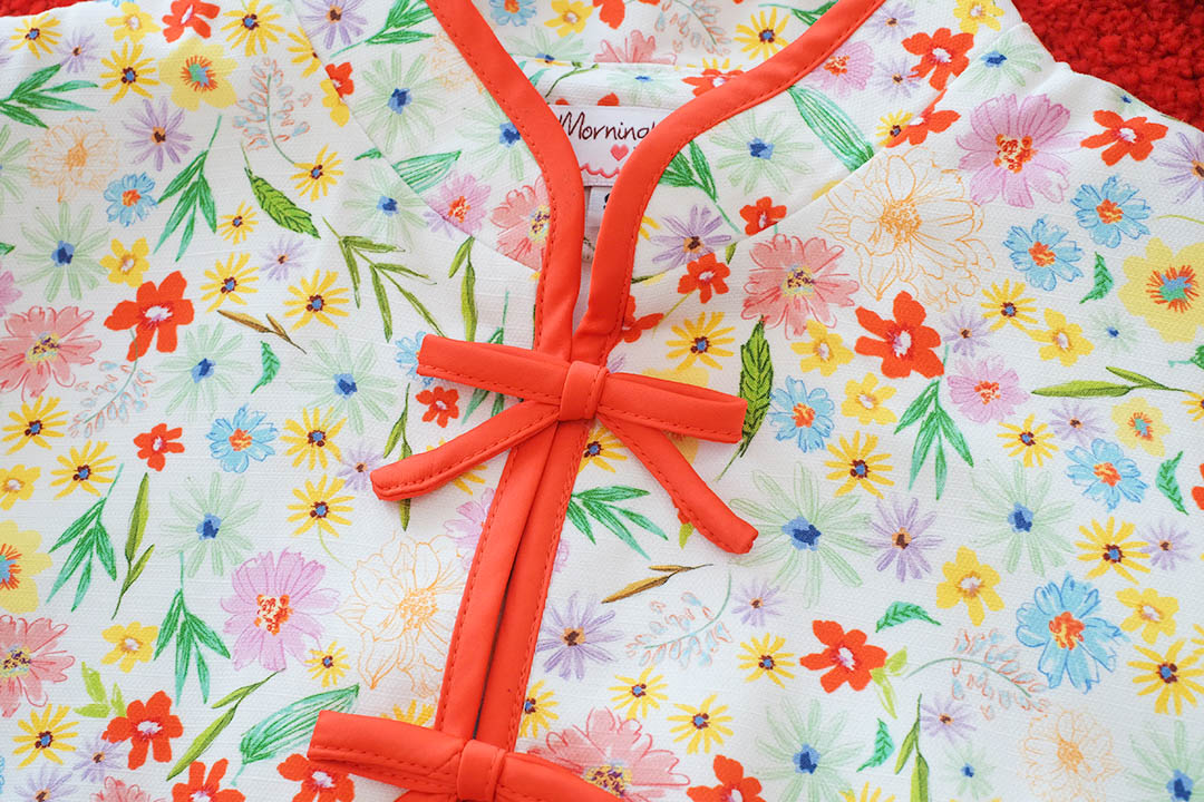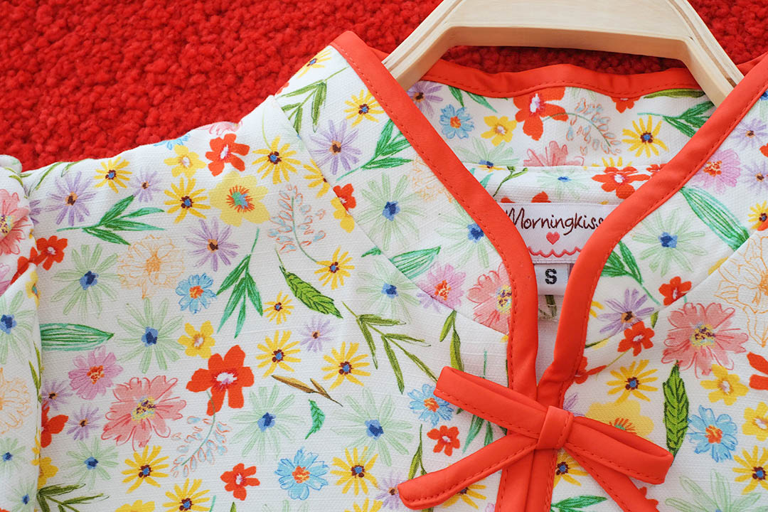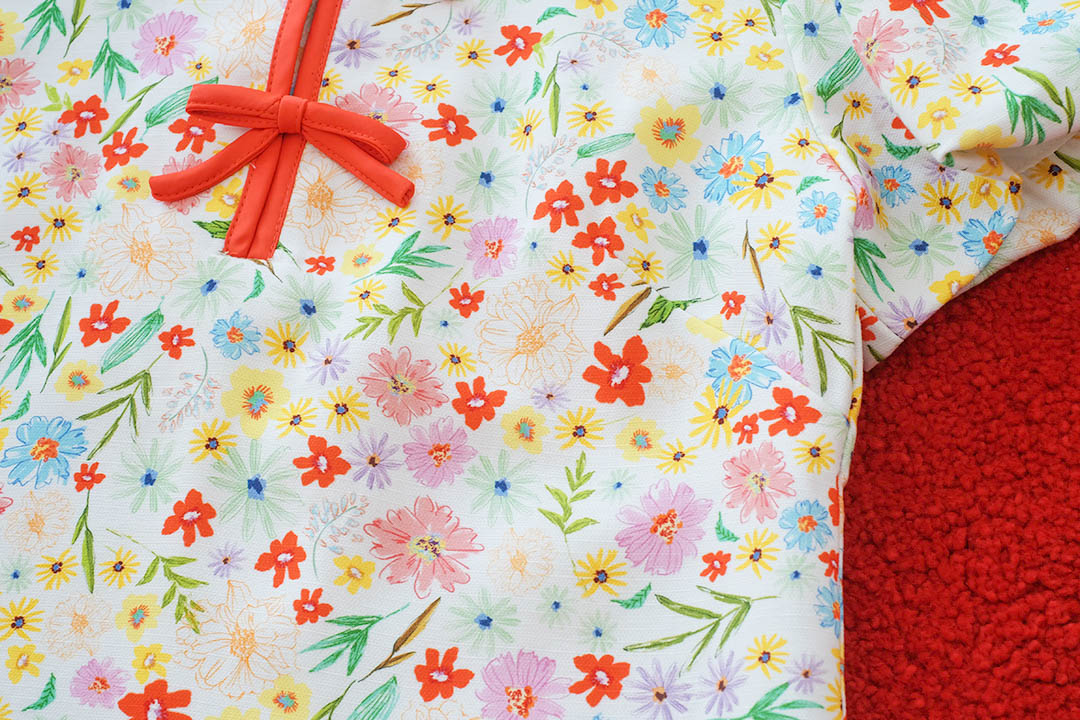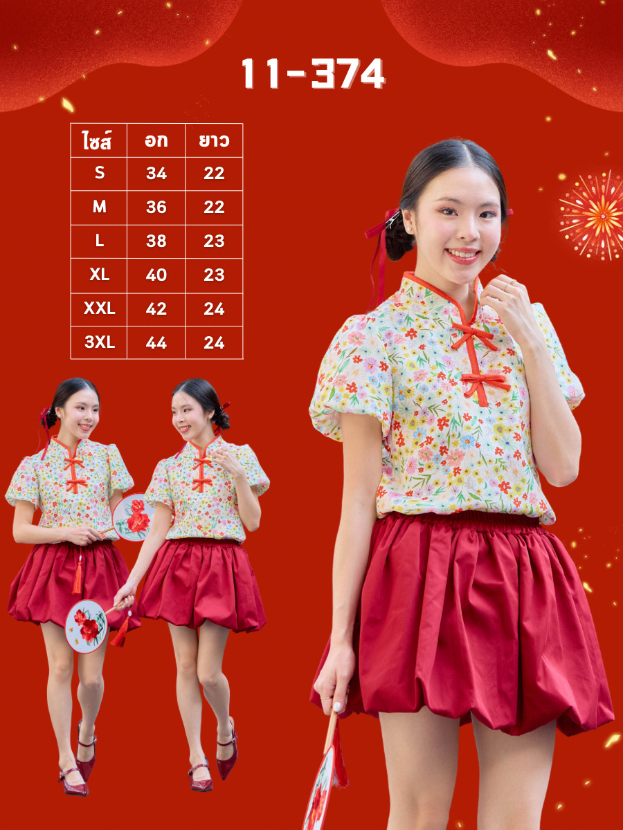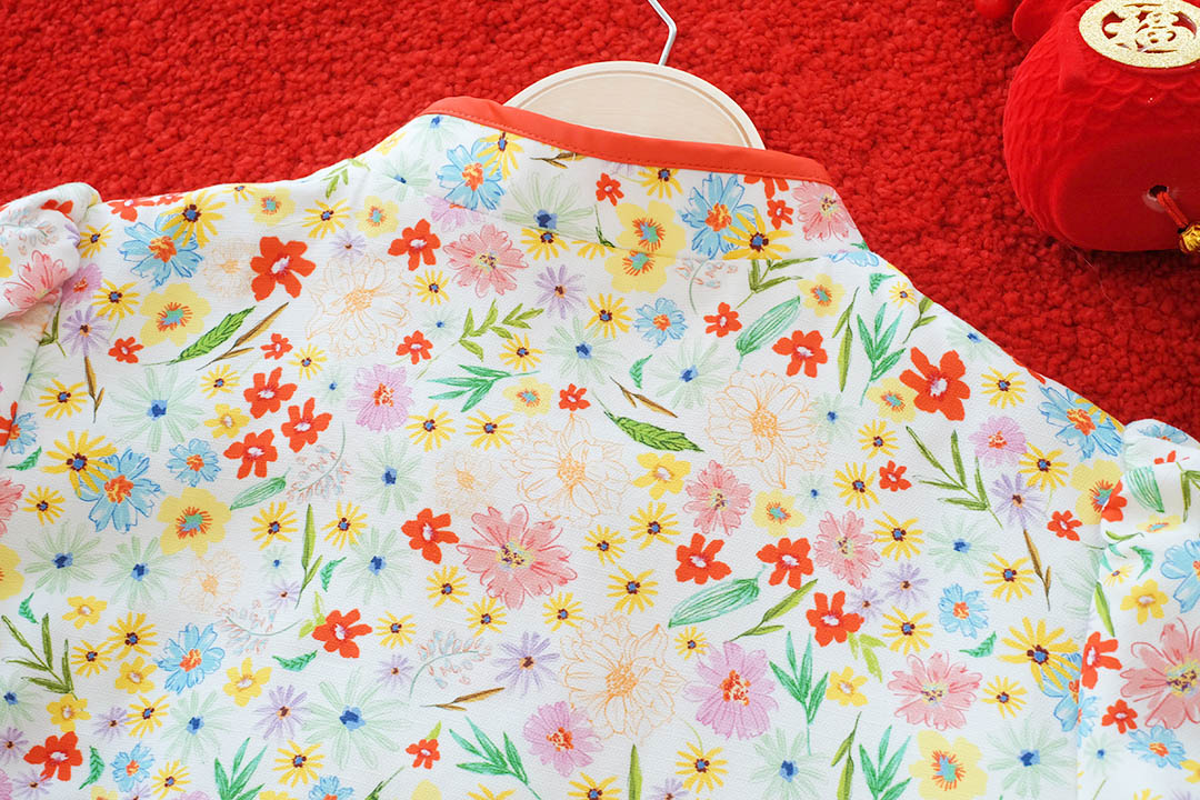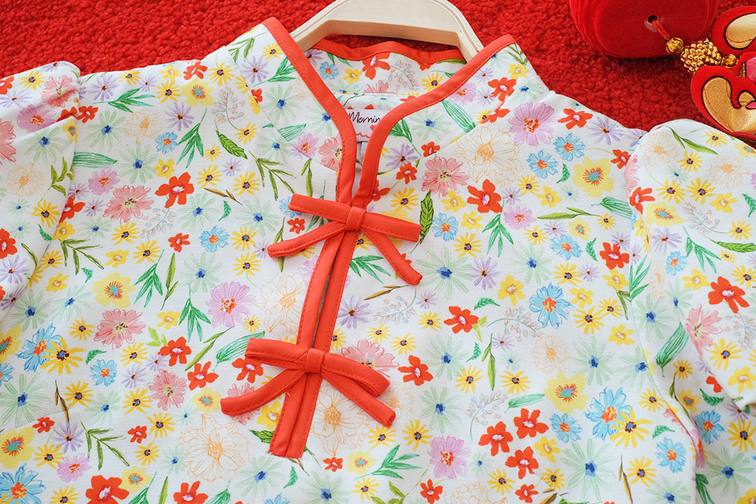 ตรุษจีนนี้สดใสกว่าใครรับความเฮงแบบ Colorful ใครไม่อยากใส่แดงต้องจัดตัวนี้เลยค่ะ! เสื้อคอจีนสีขาวพิมพ์ลาย ดอกไม้ป่าหลากสีทั้งเหลือง ม่วง แดง น่ารักสดใสแข่งกับดอกไม้จริงไปเลยแต่ยังไม่ทิ้งความเป็นสิริมงคลด้วยดีเทล กุ๊นขอบแดงและกระดุมจีนสีแดงที่คอและหน้าอกตัดกับลายดอกไม้ได้โดดเด่นมาก แขนบอลลูนทรงสวยใส่แล้วหน้าเด็ก ดูร่าเริง มีซับในทั้งตัว แมตช์กับกางเกงยีนส์หรือกระโปรงสีแดงคือเข้ากันสุดๆ เป็นลุคอาหมวยแสนซนที่ห้ามพลาดเลยค่ะ!