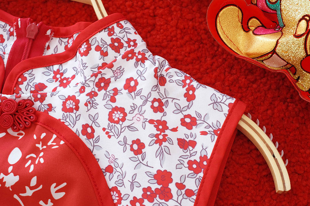 ตรุษจีนนี้ขอเป็น"อาหมวยสายแฟ"แบบไม่ซ้ำใคร เสื้อกี่เพ้าแขนกุดที่เก๋ที่สุดในนาทีนี้โดดเด่นด้วยดีไซน์การตัดต่อผ้า 2 ลวดลายเข้าด้วยกันช่วงไหล่เป็นลายดอกเล็กพื้นขาวตัดกับช่วงตัวที่เป็นลายดอกไม้ขาวพื้นแดงให้ลุคที่ดูมีมิติเหมือนใส่เลเยอร์ทับกันเพิ่มความคิ้วท์ด้วยดีเทลกระดุมจีน 3 จุดด้านบนช่วยดึงดูดสายตา ด้านหลังมีซิปซ่อนสวมใส่ง่ายทรงแขนกุดใส่สบายรับอากาศร้อนเมืองไทยได้ชิลล์ๆ แมตช์กับกระโปรงแดงคือน่ารักเต็มสิบไม่หักเลยค่า!