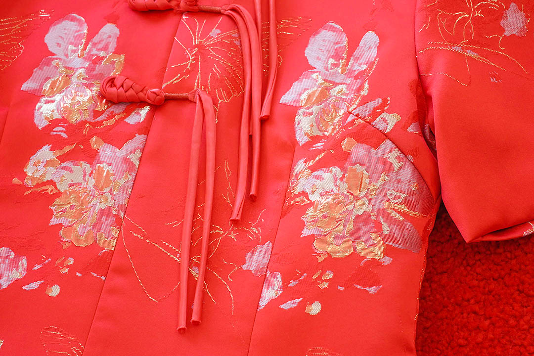 แดงเหนี่ยวทรัพย์รับความเฮงตรุษจีนกับเสื้อกี่เพ้าสีแดงงานดีเทลคือระดับ Masterpiece ผ้าไหมเนื้อดีพิมพ์ลายดอกไม้สีทองเล่นแสงสวยมากกก ใส่แล้วขับผิวออร่าจับ ไฮไลท์คือดีไซน์คอจีนแต่งกระดุมจีนพูู่ยาวเรียงลงมา 3 ชั้นเพิ่มความเก๋และความพริ้วไหวเวลาขยับตัว ผสมผสานความทันสมัยรุ่นนี้ซับในเป้นผ้าไหมอิตาลีอย่างดีเย็บติดมาให้ทั้งตัว ใส่สบาย ไม่คัน ไม่บาง จะแมตช์กับกางเกงแดงขายาวก็ดูเก๋หรือใส่กับกระโปรงก็ดูหวานใส่รับทรัพย์วันตรุษจีน หรือใส่ไปงานแต่งธีมจีนคือปังที่สุดในงานแน่นอนค่ะ
