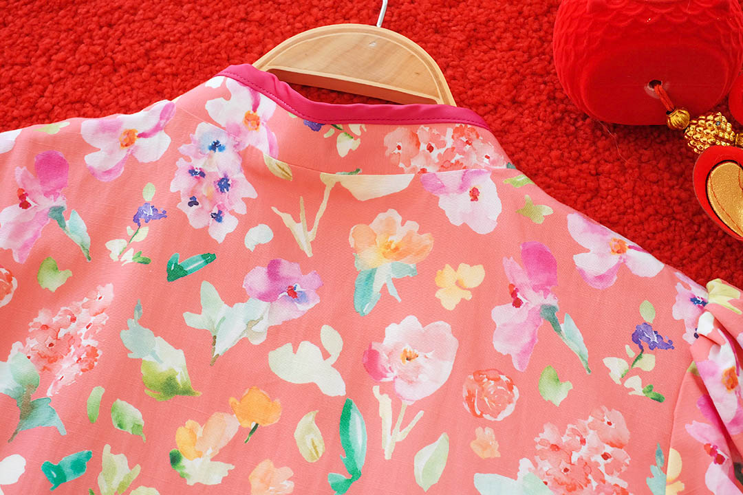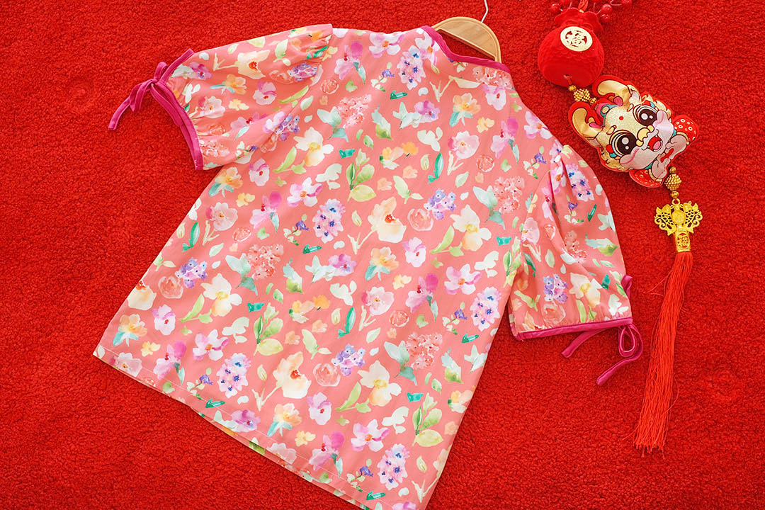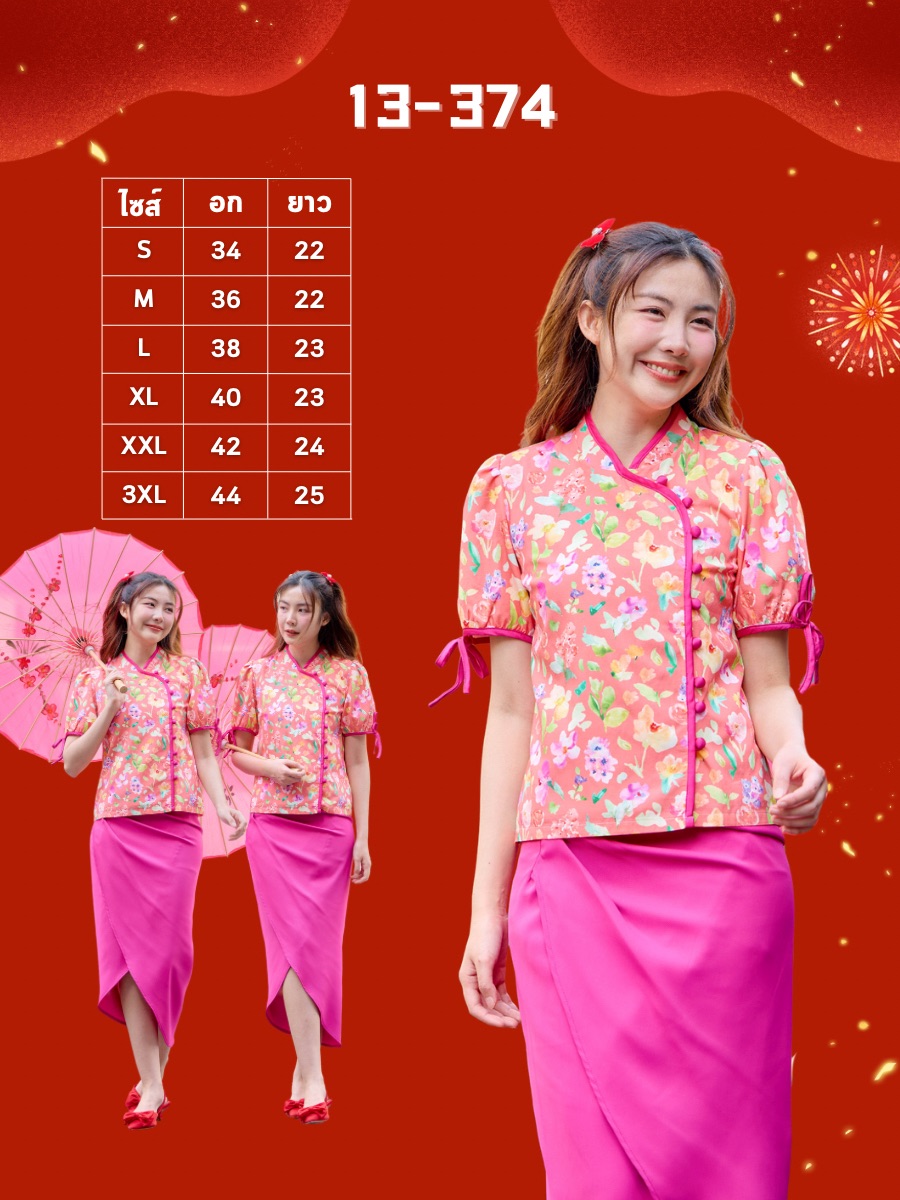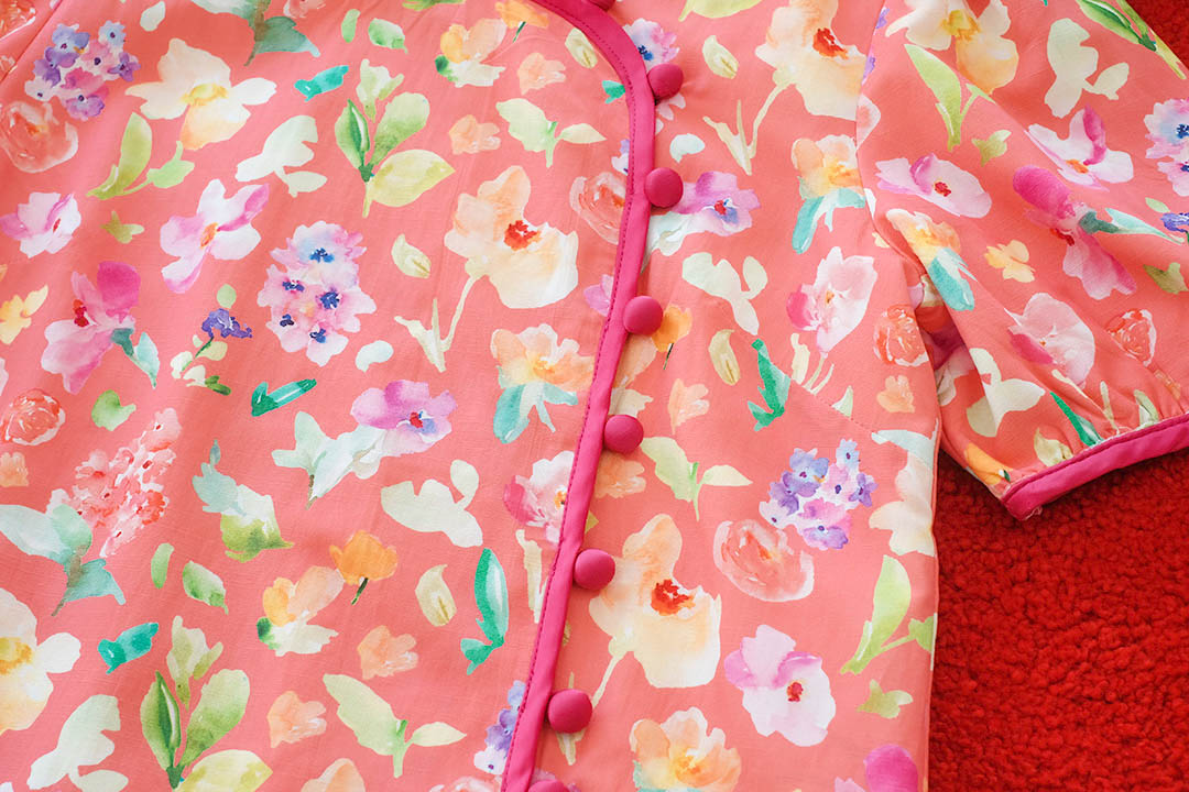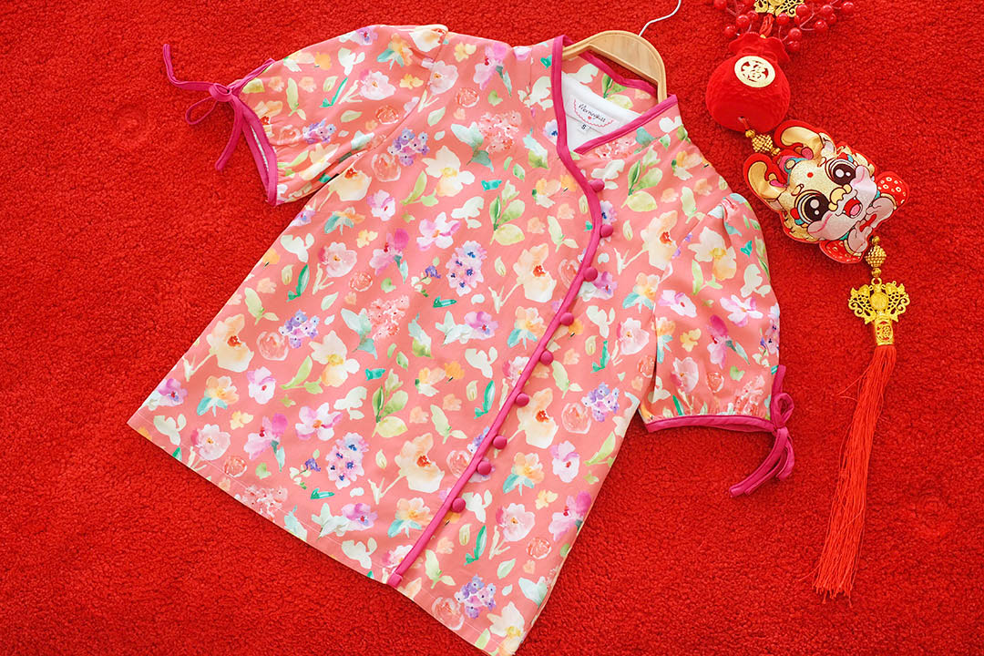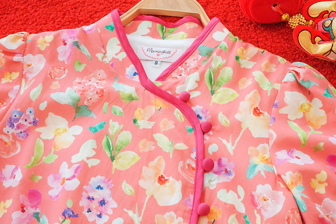 ตรุษจีนนี้ขอเป็นสาวหวานให้โลกจำ ใครไม่อยากใส่สีแดงอยากได้ลุคซอฟต์ๆต้องตัวนี้เลยค่ะ เสื้อคอจีนสีชมพูโอรสพิมพ์ลายดอกไม้สีน้ำหลากสีทั้งเหลือง ม่วง ขาว สวยเหมือนงานศิลปะ ตัดขอบด้วยเส้นกุ๊นสีชมพูเข้มเพิ่มความโดดเด่นให้ชุดไม่ดูจืด ทีเด็ดอยู่ที่ปลายแขนแต่งเชือกผูกโบว์น่ารักตะโกนมาพร้อมกระดุมผ้ากลมเรียงข้างแบบเก๋ๆ งานบุซับในอย่างดี ใส่สบาย นุ่มผิว จะใส่แมตช์กับกางเกงหรือกระโปรงก็เข้ากันเป๊ะ ได้ลุคคุณหนูแสนหวานที่ใครเห็นก็ต้องเอ็นดู เป็นไอเท็มที่หยิบมาใส่ได้บ่อย ไม่ใช่แค่ตรุษจีนแน่นอนค่ะ