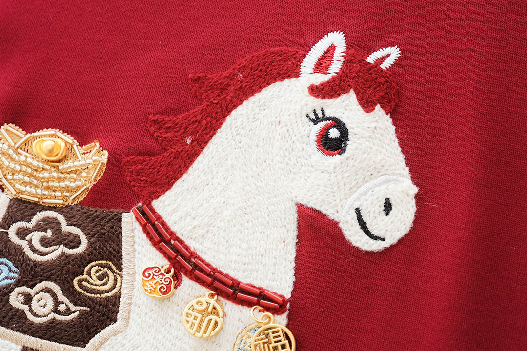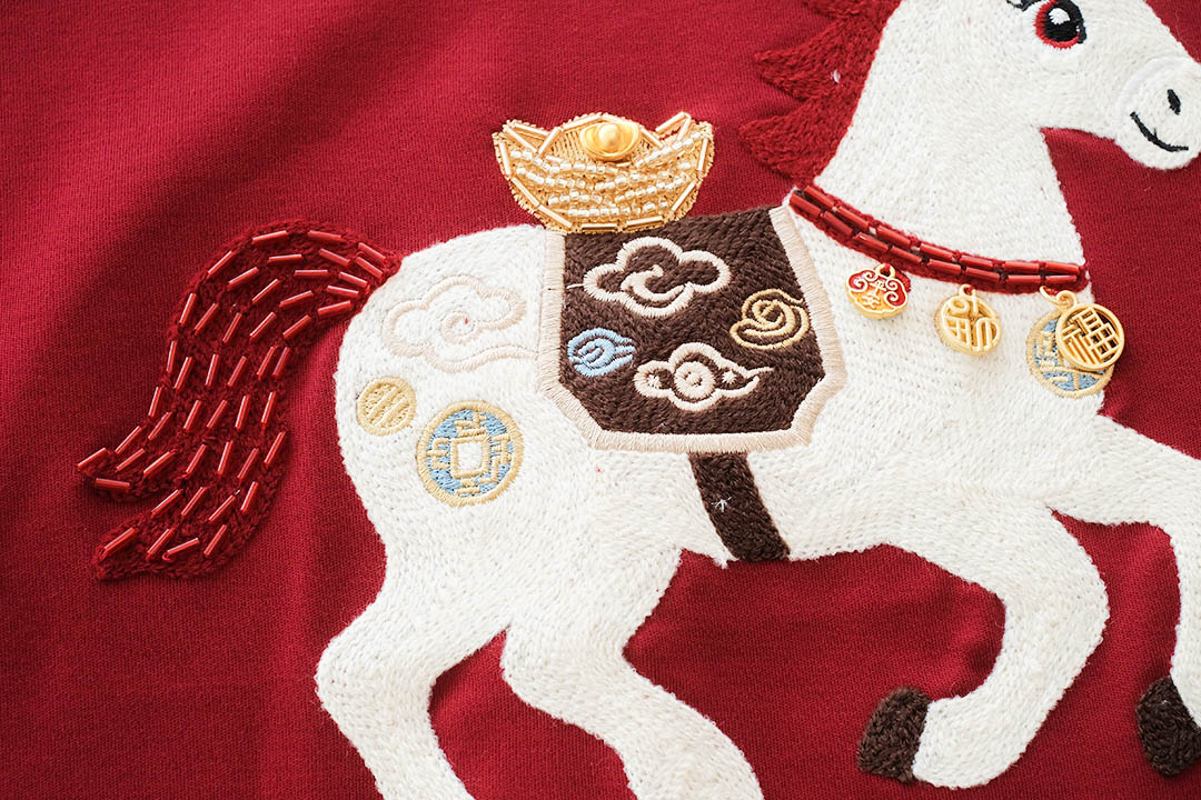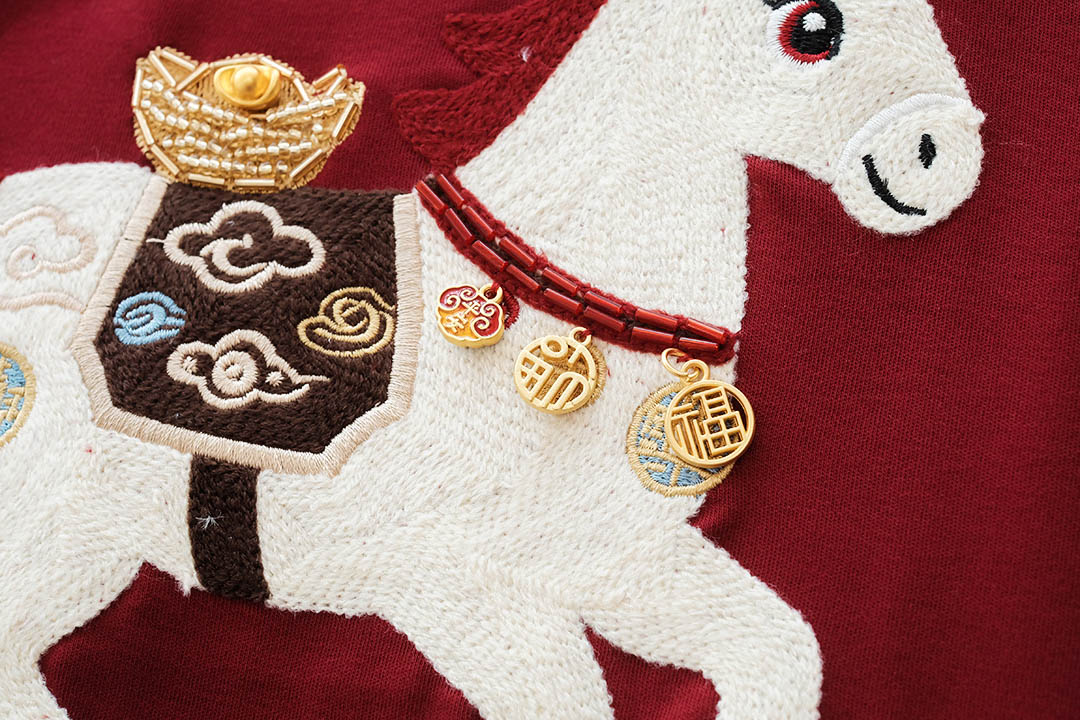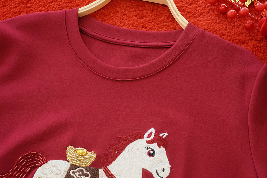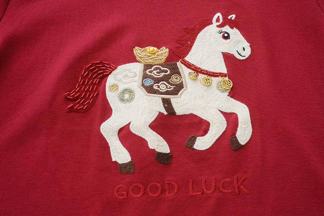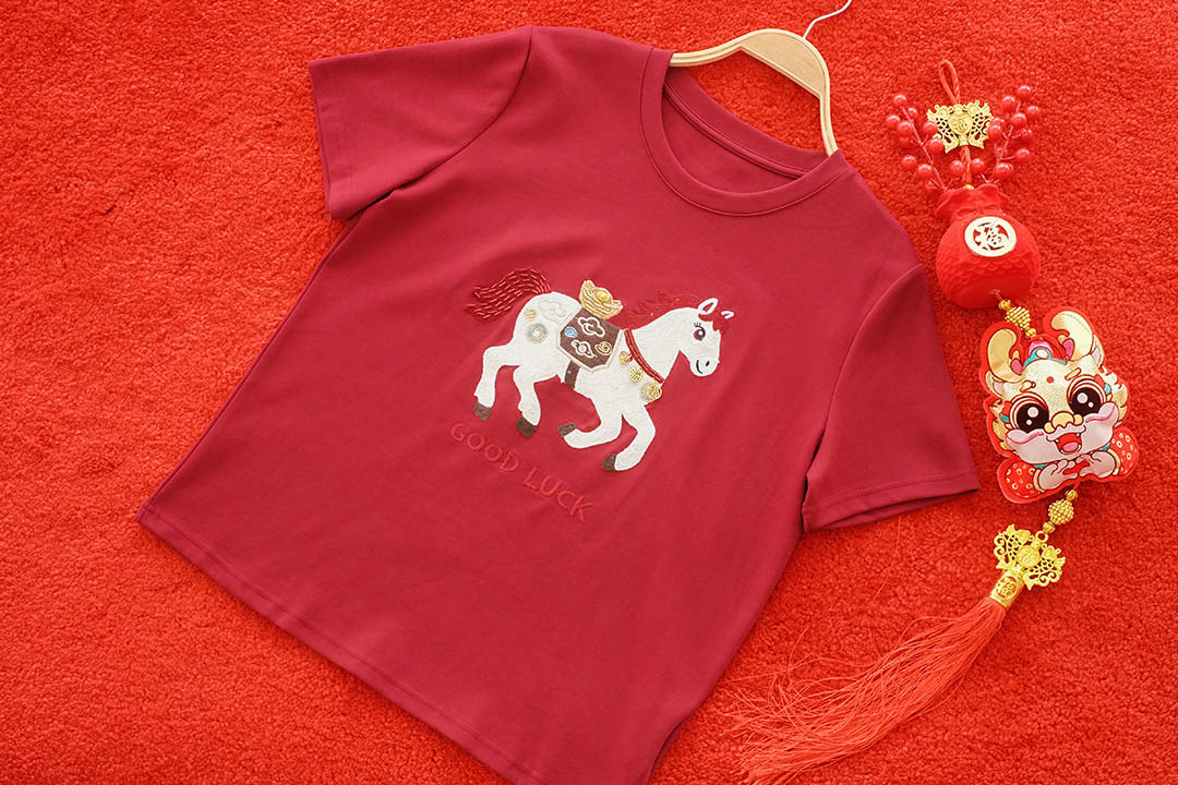 ตรุษจีนนี้ใครเน้นความสบายแต่ยังอยากเฮงต้องเสื้อตัวนี้เลย เสื้อคอกลมสีแดงเลือดหมูที่มาพร้อมงานปักสุดพรีเมียม รูปม้าสีขาวแบกก้อนทอง ตามความเชื่อจีนสื่อถึงความรวดเร็ว"รวยเร็ว รวยไว"นั่นเอง ด้านล่างปักคำว่า "GOOD LUCK" ย้ำความโชคดี เนื้อผ้าใส่สบาย ระบายอากาศดี เหมาะกับอากาศบ้านเรา แมตช์กับยีนส์ขาสั้นหรือขายาวก็ได้ลุควัยรุ่นเท่ๆ พร้อมรับอั่งเปาแบบเท่ๆแล้วค่า