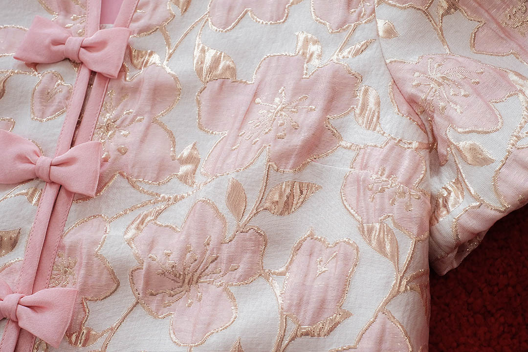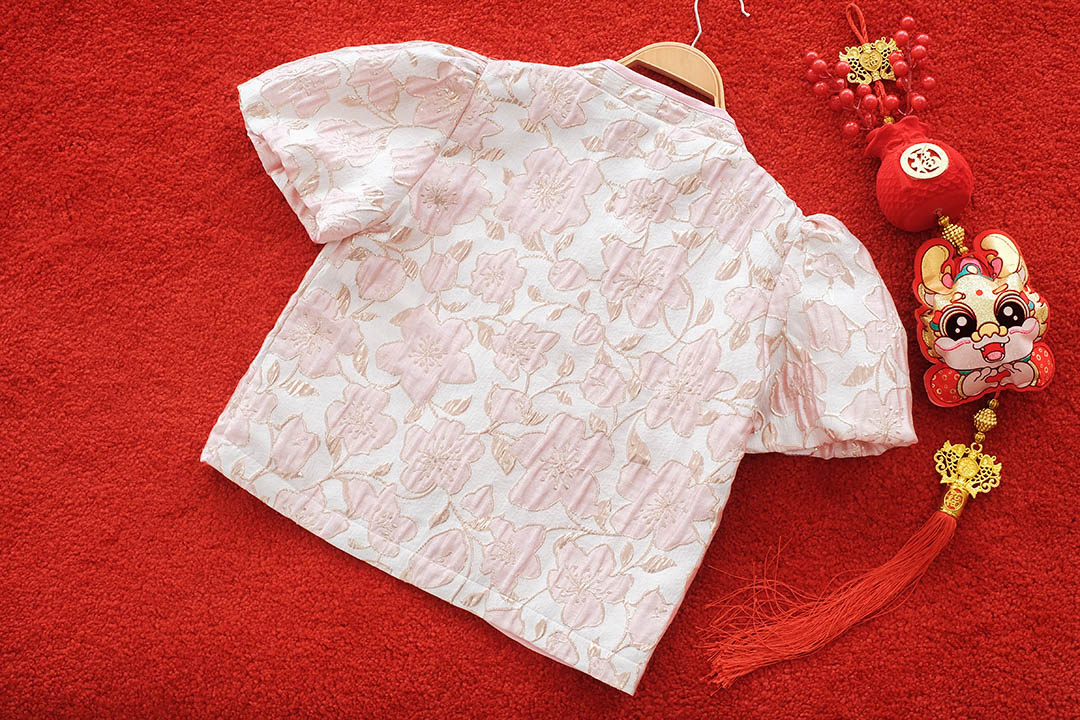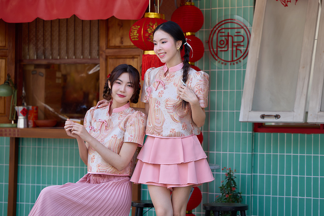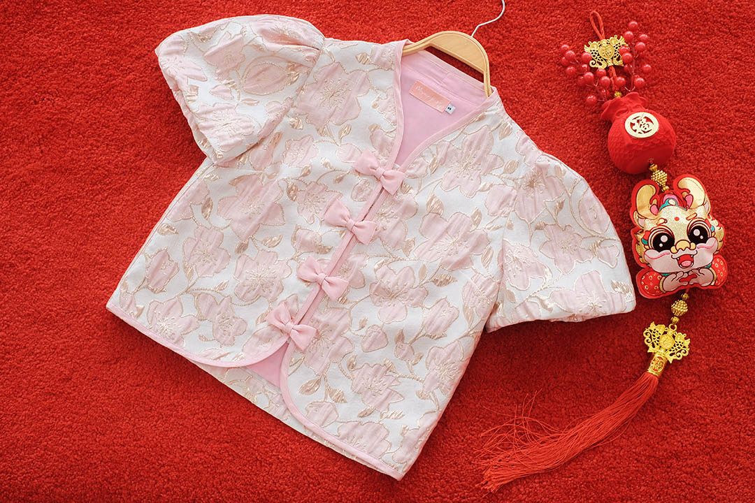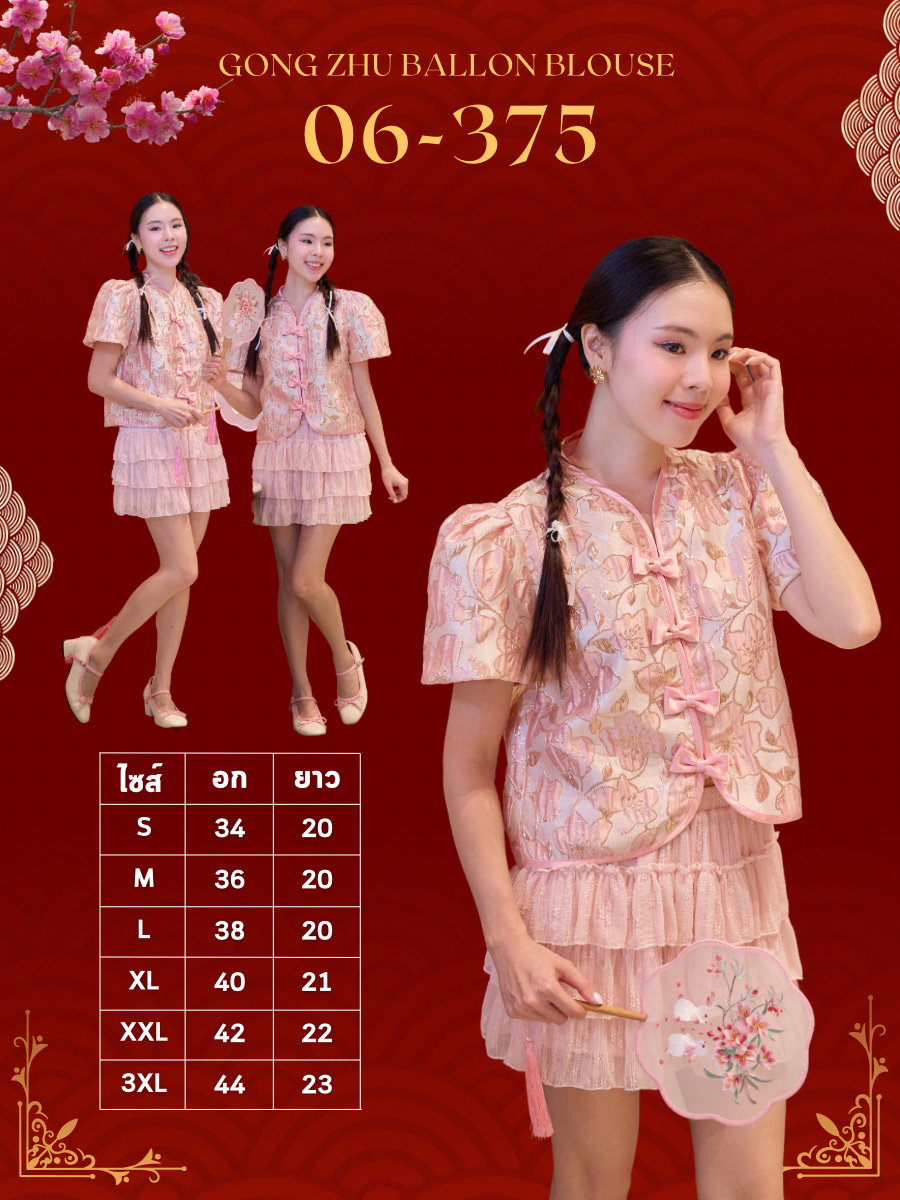 ตรุษจีนนี้สวยแพงในลุค"Pink Gold"ความละมุนที่มาพร้อมความเฮงกับเสื้อคอจีนสีชมพูพีชผ้าทอลายดอกไม้เหลือบทองเวลาโดนแสงไฟคือสวยฉ่ำมากสวยหรู คุณหนูสุดๆ ดีไซน์คอจีนแต่งกระดุมจีนโบว์เรียงยาวด้านหน้า น่ารักลงตัว กุ๊นขอบตัวเสื้อด้วยสีชมพู แขนบอลลูนแบบปล่อยปลายใส่สบายไม่รัด งานคุณภาพพรีเมียม มีซับในเย็บติดมาให้ทั้งตัว ใส่สบาย ไม่ต้องกลัวคัน แมตช์กับกระโปรงเป็นลุคอาหมวยอินเตอร์ที่ดูแพงที่สุดค่ะ