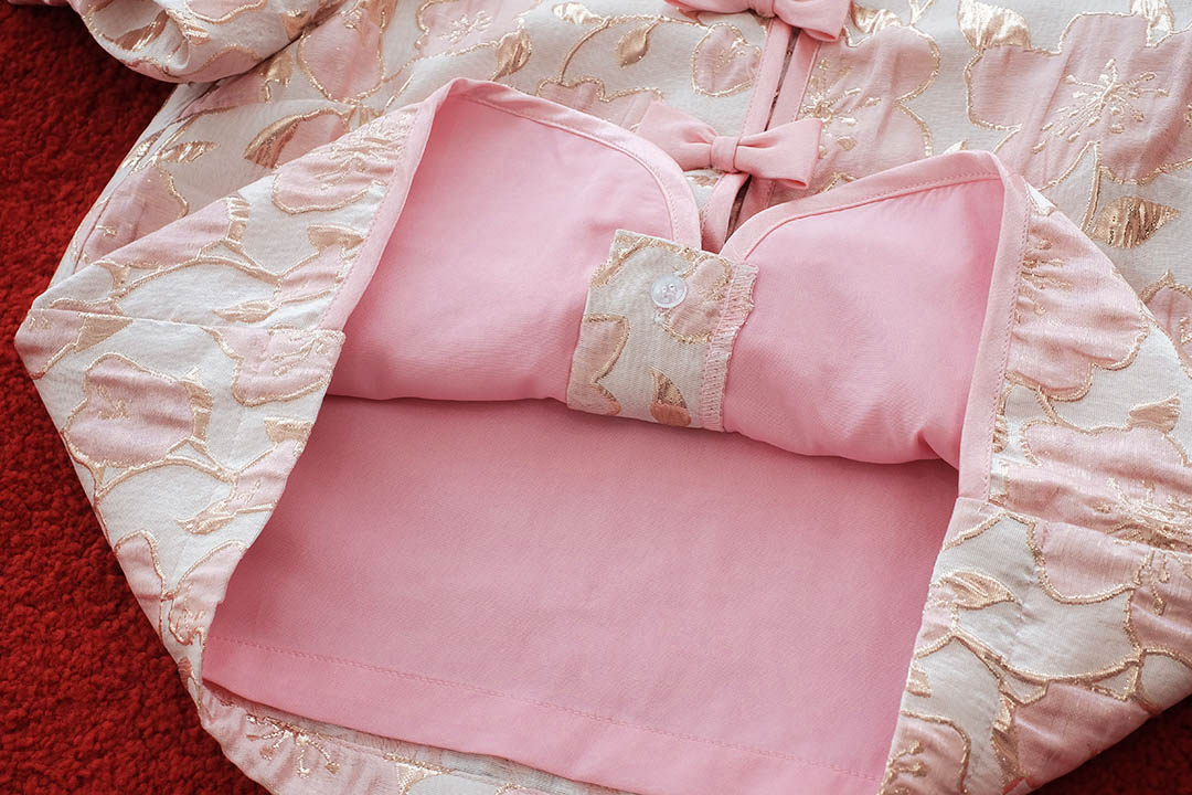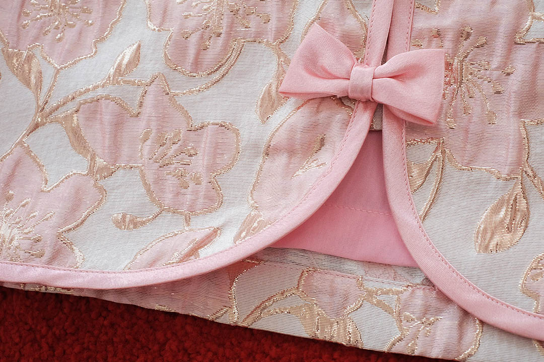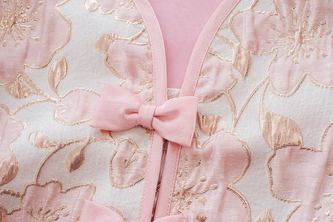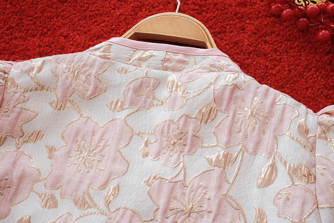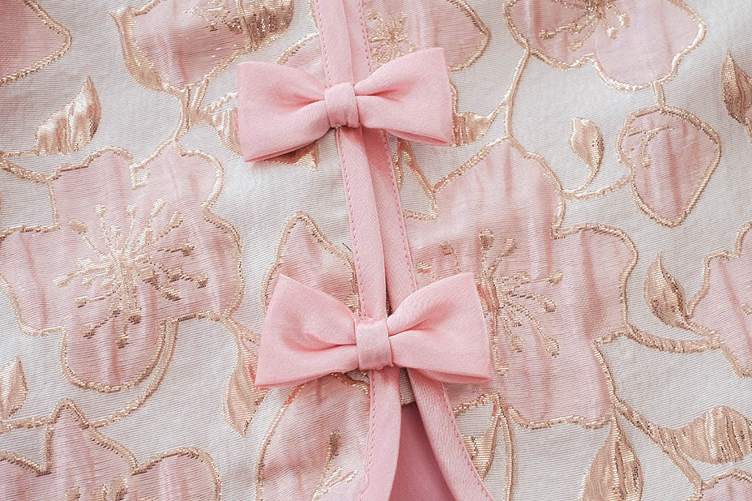 ตรุษจีนนี้สวยแพงในลุค"Pink Gold"ความละมุนที่มาพร้อมความเฮงกับเสื้อคอจีนสีชมพูพีชผ้าทอลายดอกไม้เหลือบทองเวลาโดนแสงไฟคือสวยฉ่ำมากสวยหรู คุณหนูสุดๆ ดีไซน์คอจีนแต่งกระดุมจีนโบว์เรียงยาวด้านหน้า น่ารักลงตัว กุ๊นขอบตัวเสื้อด้วยสีชมพู แขนบอลลูนแบบปล่อยปลายใส่สบายไม่รัด งานคุณภาพพรีเมียม มีซับในเย็บติดมาให้ทั้งตัว ใส่สบาย ไม่ต้องกลัวคัน แมตช์กับกระโปรงเป็นลุคอาหมวยอินเตอร์ที่ดูแพงที่สุดค่ะ