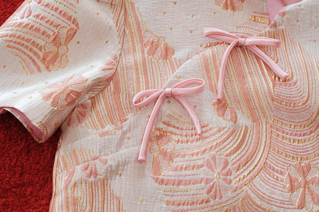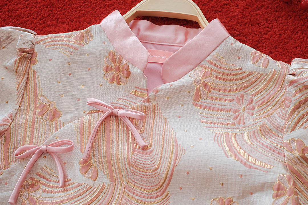 รับทรัพย์รัวๆกับเสื้อกี่เพ้าลายคลื่นทองสวยเฮงรับปีใหม่จีนกับเสื้อคอจีนที่มาพร้อมลวดลายความหมายดีตัวผ้าทอผสมดิ้นทองลายคลื่นน้ำและเมฆมงคลสื่อถึงเงินทองที่ไหลมาไม่ขาดสาย เพิ่มความคิ้วท์ด้วย โบว์ผูกด้านหน้า 2 จุด ตัดขอบคอด้วยผ้าพื้นสีชมพู เนื้อผ้าเกรดดี มีซับในเย็บติดทั้งตัว ไม่คัน ไม่บาง แมตช์ง่ายจะใส่คู่กับกระโปรงสั้นให้ดูลุคสดใสวัยรุ่น หรือใส่คู่กระโปรงยาวอัดพลีทให้ดูสวยหวานเรียบร้อยก็ได้หมด ใส่ไปรับอั่งเปาผู้ใหญ่เอ็นดูแน่นอนค่ะ