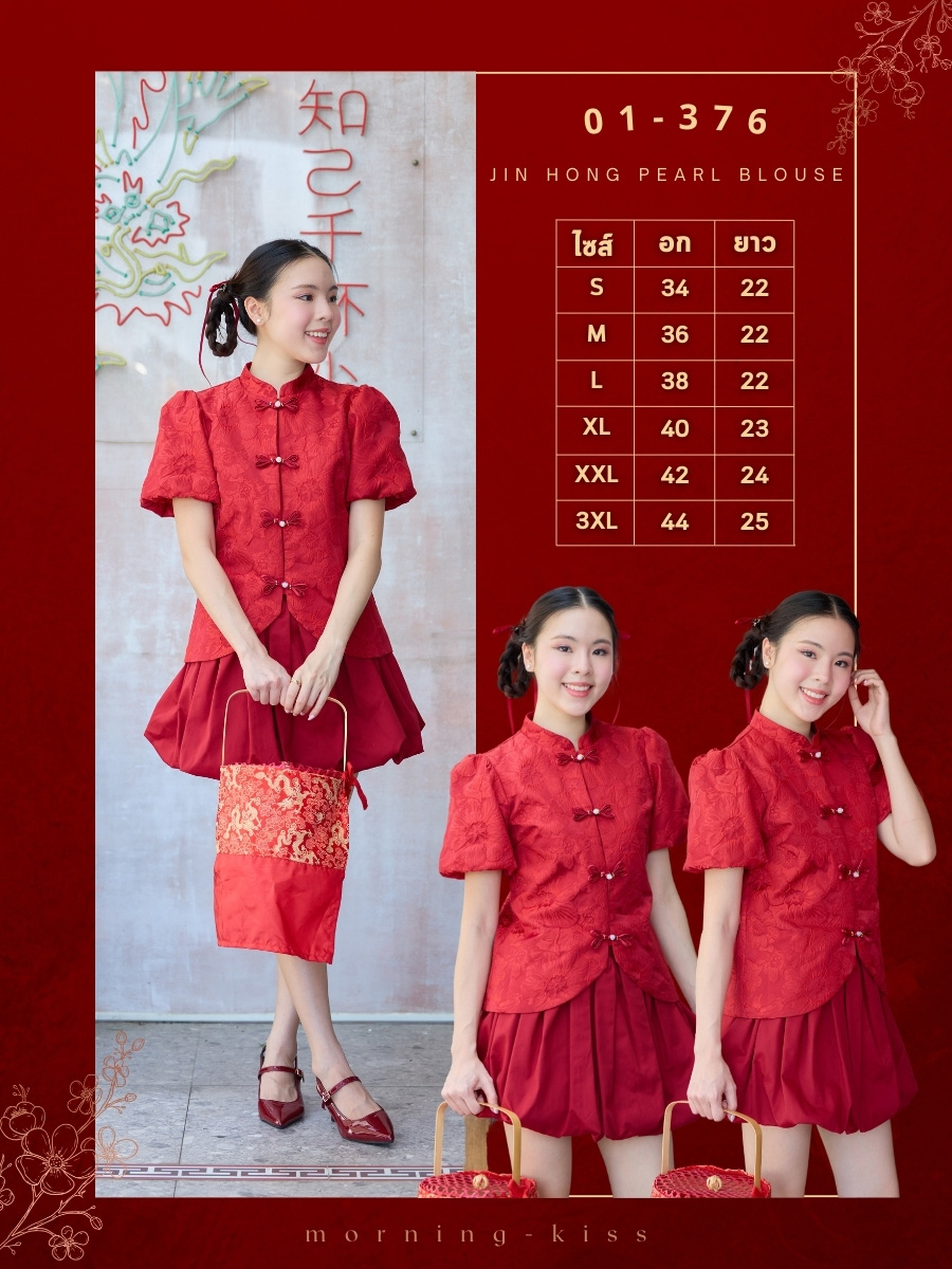 ตรุษจีนนี้สวยแพงยืนหนึ่งในดงแดงกับเสื้อกี่เพ้าที่ใครเห็นต้องเหลียวหลัง ผ้าทอลายดอกไม้นูน 3D ทั่วทั้งตัวมี Texture ดูแพงมากโทนสีแดงขับผิวให้ผ่องและดูขาวขึ้นทันที ทรงแขนบอลลูน เพิ่มความหวานด้วยกระดุมจีนรูปโบว์แต่งมุกตรงกลางเรียงยาวลงมาอย่างประณีต งานตัดเย็บเกรดเอ มีซับในเย็บติดมาให้ทั้งตัว ใส่แล้วนุ่มสบาย ไม่คัน ไม่ระคายผิว แมตช์กับกางเกงสแล็คหรือกระโปรงยาวคือสวยสง่า มงลงแน่นอนค่ะ