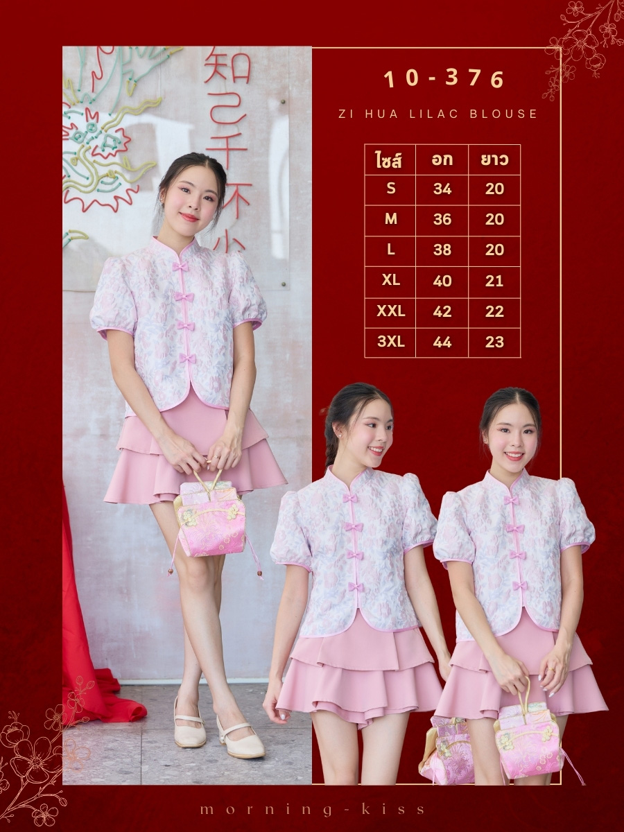 ตรุษจีนนี้ขอเป็นอาหมวยสายหวานแสนซนน่ารักจนใจเจ็บกับเสื้อกี่เพ้าสีม่วงพาสเทลที่มาพร้อมความหวานของ ขอบกุ๊นและกระดุมสีชมพูตัดกันได้ลงตัวเป๊ะ ตัวผ้าเป็น Jacquard ทอลายนูน ดีเทลกระดุมจีนรูปโบว์เรียงด้านหน้า เพิ่มความคิ้วท์ให้ลุคดูขี้เล่น ทรงแขนบาร์บี้ แมตช์กับกางเกงขาวหรือกระโปรงชมพูก็เข้ากันสุดๆ เป็นสีที่ใส่แล้วหน้าไบร์ทขับผิวมากค่ะ จะใส่ไปคาเฟ่หรือใส่ทำงานช่วงตรุษจีนก็น่ารัก ไม่ซ้ำใครแน่นอนค่ะ