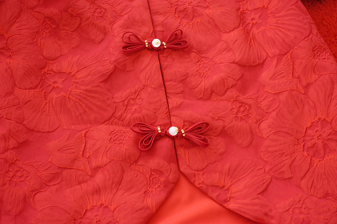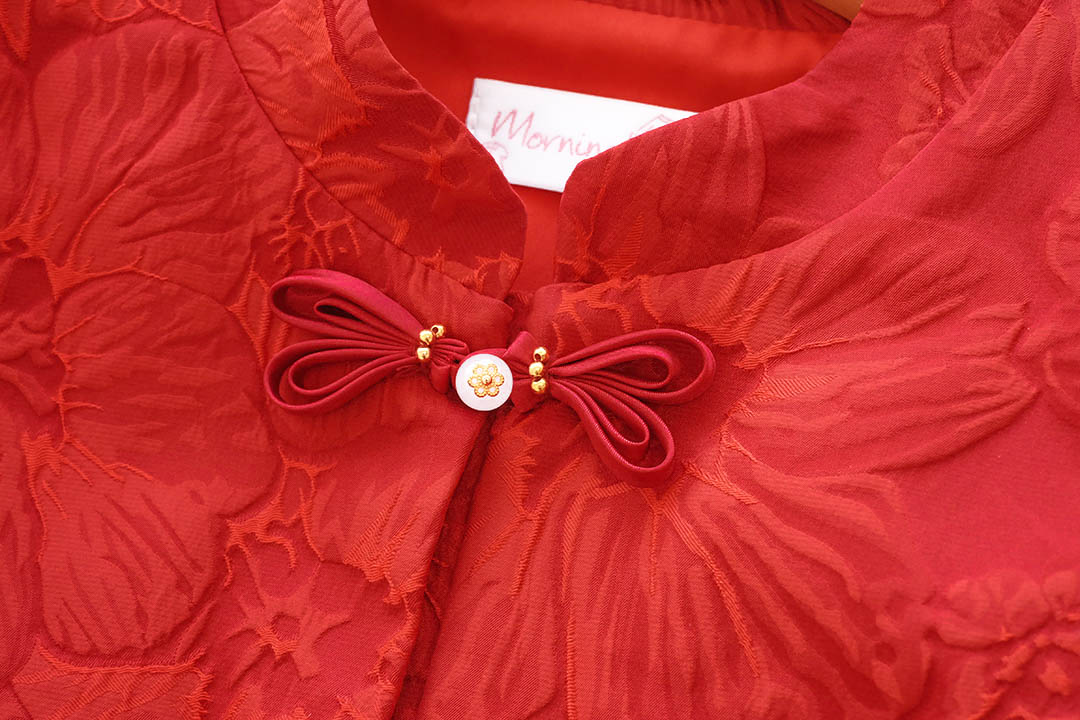 ตรุษจีนนี้สวยแพงยืนหนึ่งในดงแดงกับเสื้อกี่เพ้าที่ใครเห็นต้องเหลียวหลัง ผ้าทอลายดอกไม้นูน 3D ทั่วทั้งตัวมี Texture ดูแพงมากโทนสีแดงขับผิวให้ผ่องและดูขาวขึ้นทันที ทรงแขนบอลลูน เพิ่มความหวานด้วยกระดุมจีนรูปโบว์แต่งมุกตรงกลางเรียงยาวลงมาอย่างประณีต งานตัดเย็บเกรดเอ มีซับในเย็บติดมาให้ทั้งตัว ใส่แล้วนุ่มสบาย ไม่คัน ไม่ระคายผิว แมตช์กับกางเกงสแล็คหรือกระโปรงยาวคือสวยสง่า มงลงแน่นอนค่ะ
