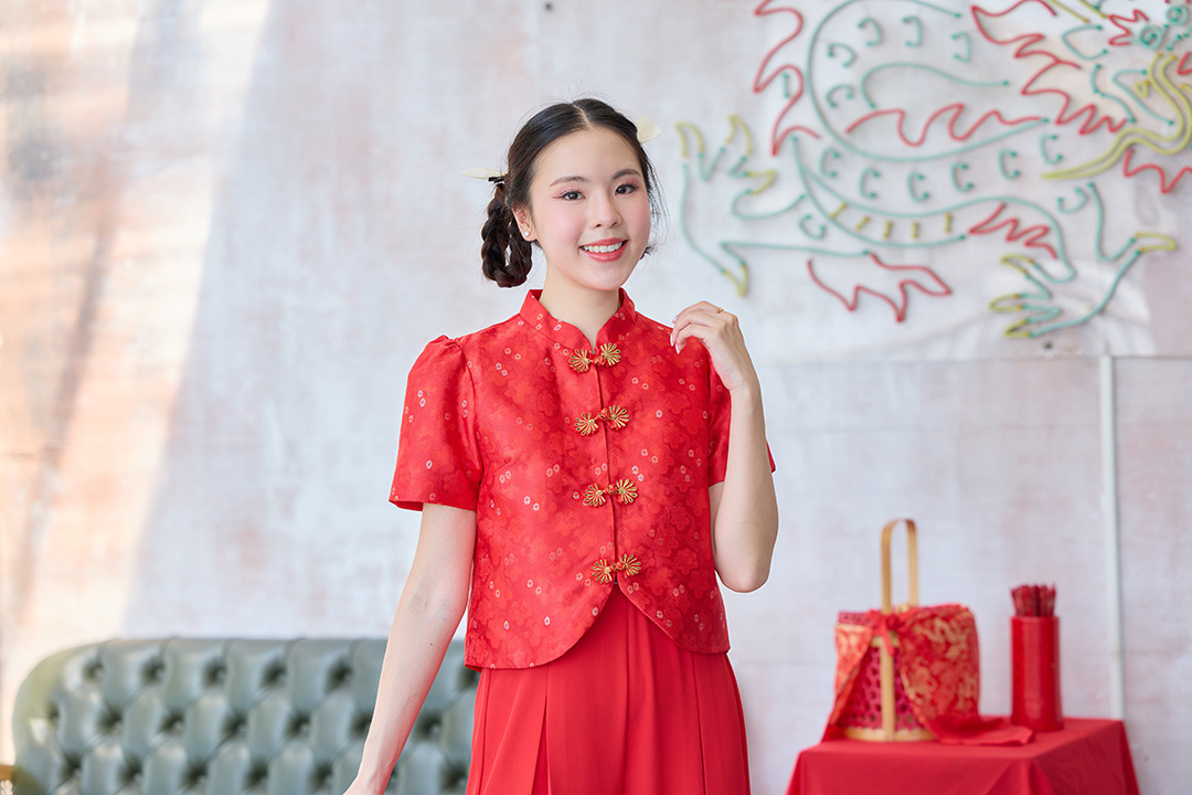 ตรุษจีนนี้สวยแพงยืนหนึ่งในดงแดงกับเสื้อกี่เพ้าที่ใครเห็นต้องเหลียวหลัง ผ้าทอลายดอกไม้นูน 3D ทั่วทั้งตัวมี Texture ดูแพงมากโทนสีแดงขับผิวให้ผ่องและดูขาวขึ้นทันที ทรงแขนบอลลูน เพิ่มความหวานด้วยกระดุมจีนรูปโบว์แต่งมุกตรงกลางเรียงยาวลงมาอย่างประณีต งานตัดเย็บเกรดเอ มีซับในเย็บติดมาให้ทั้งตัว ใส่แล้วนุ่มสบาย ไม่คัน ไม่ระคายผิว แมตช์กับกางเกงสแล็คหรือกระโปรงยาวคือสวยสง่า มงลงแน่นอนค่ะ
