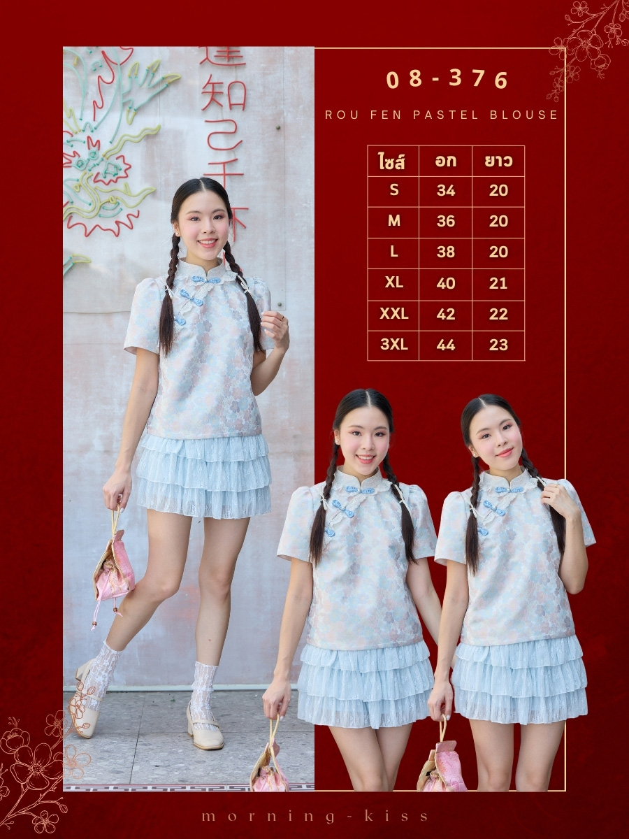 ตรุษจีนนี้ขอเป็นสาวหวานกับเสื้อกี่เพ้าสีฟ้าอ่อนพิมพ์ลายดอกไม้สีชมพูละมุนตาแต่งระบายลูกไม้สีขาวรอบคอและสาบเสื้อให้ลุคคุณหนูที่ดูอ่อนโยนแต่งกระดุมจีนสีฟ้าประดับมุก งานเกรดพรีเมียม มีซับในเย็บติดมาให้ทั้งตัวเนื้อผ้านุ่ม ใส่สบาย ไม่คัน ไม่บาง มีซับในทั้งตัว ใส่แล้วทรงสวย ไม่ระคายเคืองผิว เป็นชุดที่หยิบมาใส่เมื่อไหร่ก็ดูดี ดูเป็นสาวหวานผู้ดีสุดๆจะแมตช์กับกระโปรงขาวคือน่ารักเต็มสิบ ใครเห็นเป็นต้องหลงรักแน่นอนค่ะ