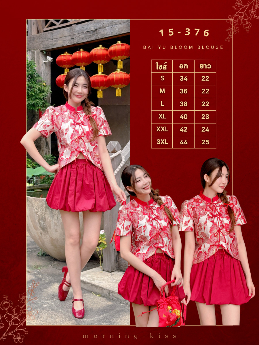 ตรุษจีนนี้สวยสดใสรับทรัพย์ก้อนโตใครชอบความโดดเด่นต้องรุ่นนี้กับเสื้อกี่เพ้าพื้นสีขาวพิมพ์ลายดอกไม้สีแดงดอกใหญ่ตัดขอบทองกระจายทั่วตัวสวยคมชัดมาแต่ไกลตัดด้วยคอจีนและขอบสีแดงสดช่วยขับผิวให้ดูขาวผ่อง เพิ่มลูกเล่นด้วยกระดุมจีนผูกโบว์เส้นยาวสีแดง ชายเสื้อด้านหน้าออกแบบเป็นทรงเว้าโชว์ ซับในสีแดงด้านในดูมีเลเยอร์สวยงาม งานเกรดพรีเมียม ใส่แมตช์กับกางเกงดำหรือแดงก็ปังสุดๆเป็นลุคที่ดูรวย สวย เฮง แบบไม่ต้องพยายามเลยค่ะ