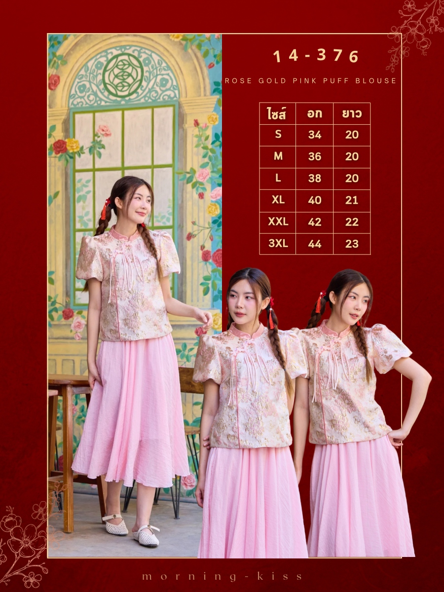 14-376 Rose Gold Pink Puff Blouse - 6 ไซส์