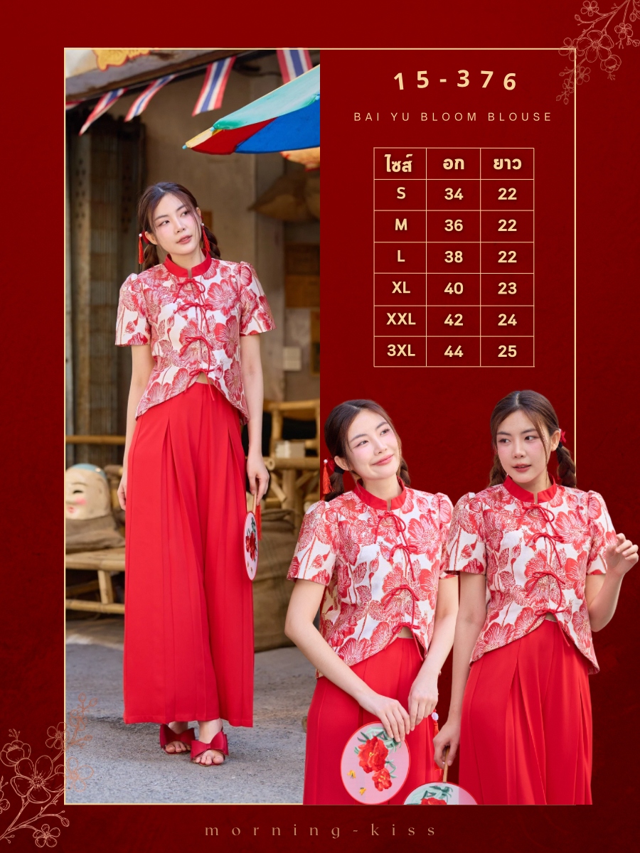ตรุษจีนนี้สวยสดใสรับทรัพย์ก้อนโตใครชอบความโดดเด่นต้องรุ่นนี้กับเสื้อกี่เพ้าพื้นสีขาวพิมพ์ลายดอกไม้สีแดงดอกใหญ่ตัดขอบทองกระจายทั่วตัวสวยคมชัดมาแต่ไกลตัดด้วยคอจีนและขอบสีแดงสดช่วยขับผิวให้ดูขาวผ่อง เพิ่มลูกเล่นด้วยกระดุมจีนผูกโบว์เส้นยาวสีแดง ชายเสื้อด้านหน้าออกแบบเป็นทรงเว้าโชว์ ซับในสีแดงด้านในดูมีเลเยอร์สวยงาม งานเกรดพรีเมียม ใส่แมตช์กับกางเกงดำหรือแดงก็ปังสุดๆเป็นลุคที่ดูรวย สวย เฮง แบบไม่ต้องพยายามเลยค่ะ
