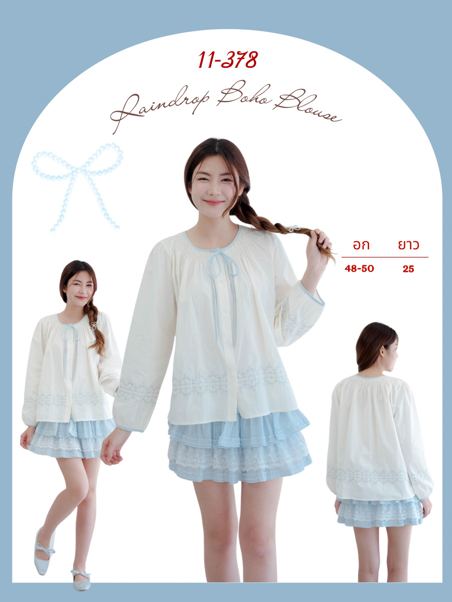 มินิมอลสไตล์ลูกคุณ ใครชอบความเรียบง่ายแต่มีกิมมิคต้องรักรุ่นนี้กับเสื้อแขนยาวสีขาวครีมละมุนตา ดีไซน์คอรูดระบายแต่งเชือกผูกโบว์เส้นเล็กสีฟ้า โดดเด่นด้วยงานปักลวดลายเส้นสีฟ้าที่ชายเสื้อและปลายแขนเข้าเซ็ตกับโบว์ที่คอแบบเป๊ะๆให้ฟีลสาววินเทจน่ารักน่าเอ็นดู ด้านหน้าเป็นกระดุมปลดได้จริง สวมใส่ง่าย จัดไปแมตช์กับกระโปรงยาวหรือกางเกงตัวเก่งก็สวยทุกลุค เป็นไอเท็มกันตายที่หยิบมาใส่ได้บ่อยแน่นอนค่า