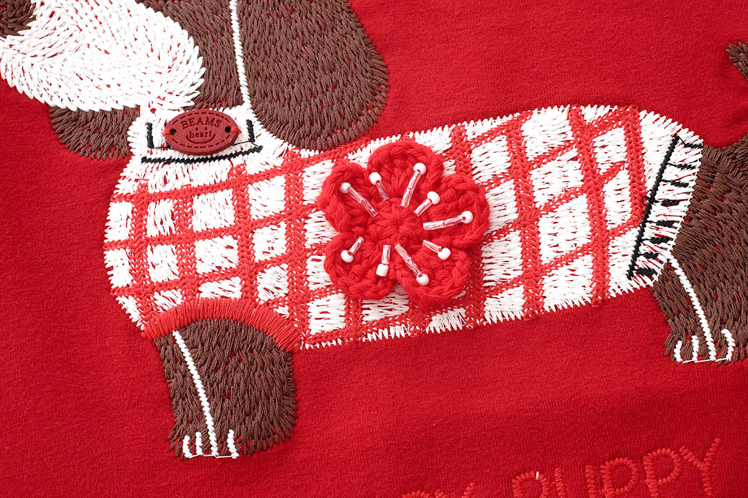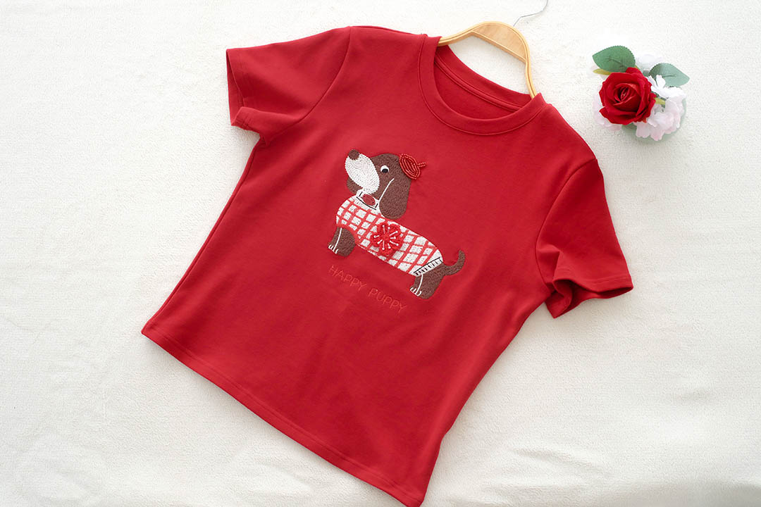 น่ารักเกินต้านวันสบายๆหยิบตัวนี้มาใส่คือจบปิ๊งกับเสื้อคอกลมสีแดงขับผิวดีเทลจัดเต็มกับงานปักลายน้องหมาดัชชุนใส่หมวกเบเร่ต์และเสื้อลายสก๊อตพร้อมกิมมิคข้อความ HAPPY PUPPY แต่งโบว์ถักดอกไม้แบบ 3D เนื้อผ้ายืดนุ่มใส่สบายไม่ร้อนเหมาะกับอากาศบ้านเราสุดๆแมตช์กับยีนส์ขาสั้นหรือกางเกงผ้าก็ดูเด็กลงไปอีก 10 ปี เป็นลุคแคชชวลที่ใส่ไปคาเฟ่ เดินห้าง หรือไปเที่ยวชิลล์ๆ ก็น่ารักสดใสทุกลุคค่า