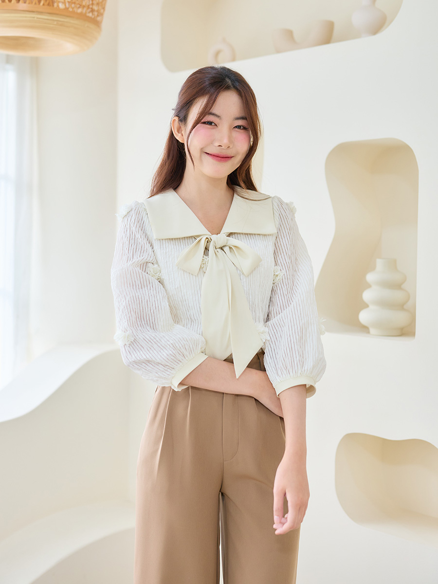 มาแล้วค่าาา! เสื้อแขน 5 ส่วนโทนสีครีมละมุนใจที่ใส่แล้วสวยจบ ดูดีออร่าพุ่ง! เนื้อผ้าคอตตอนอัดย่นมี Texture เก๋ๆ ดีเทลแต่งดอกลอยทั่วตัว ใส่แล้วดูมีมิติไม่จืดแน่นอน ช่วงตัวมีซับในไม่โป๊มั่นใจได้เลย มีกระดุมเรียงหน้าดีไซน์คอปกพร้อมโบว์ผูกคอเพิ่มลุคหวานฉ่ำแต่ยังคงความเรียบร้อย รุ่นนี้ใส่ไปทำงานก็ดูดีสุภาพ ใส่เที่ยวก็เป็นสาวหวานดูแพง ใส่กับกระโปรงหรือกางเกงสีไหนก็เข้ากัน รีบมาตำด่วนๆ ก่อนของหมดน้าาา~