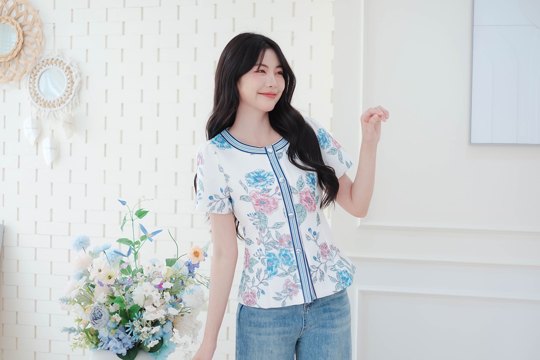 ยกระดับความสวยให้พุ่งปรี๊ดกับเสื้อแขนสั้นสีขาวตัดด้วยลายดอกไม้สีฟ้ากับชมพูพาสเทลคือละมุนนีมากกก ใส่แล้วออร่าจับแน่นอน! ทรงเข้ารูปใส่แล้วดูมีเอวแถมดีเทลขอบเสื้อเป็นงานปักลายเส้นตรงกลางคือดูแพงมาก มีซับในทั้งตัว จะแมทช์กับยีนส์แบบในรูปก็คือชิคๆ คูลๆ ได้ลุคสบายๆ หรือจะใส่กับกระโปรงก็ดูเป็นสาวหวานกรุบกริบ คือเป็นเสื้อที่หยิบมาใส่ได้บ่อยจริงๆ