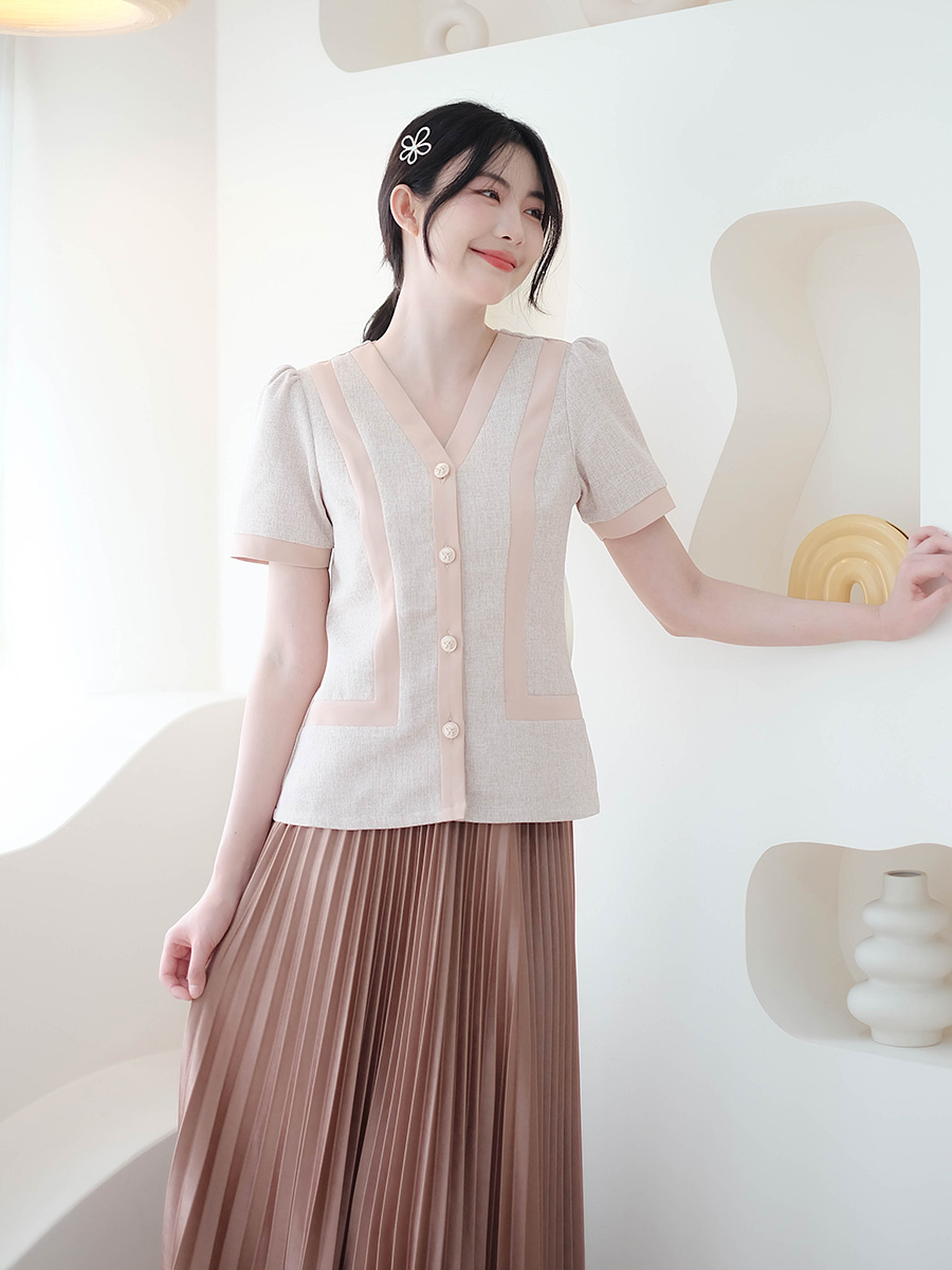 งานผ้าทวีตคือลูกคุณหนูยืนหนึ่ง!ดีเทลคอวีคือพรางหุ่นให้ดูเพรียวสุดๆ ทรงเข้ารูป แถมกระดุมมุกโบว์ทองสวยหรูเรียงหน้า ตัดกับขอบเสื้อสีพีชน่ารักมากกก! เข้ากันแบบลงตัวสุด ด้านในอัดกาว + ใส่ซับในอย่างดี ใส่แล้วดูแพงแบบตะโกน จะใส่ไปคาเฟ่ก็คือได้รูปสวยๆ ลงไอจีปังๆ แน่นอน หรือจะใส่ไปทำงานก็คือดูดีมีออร่าสุดๆ ต้องมีติดตู้แล้ว ไม่งั้นพลาดมากจริงๆ
