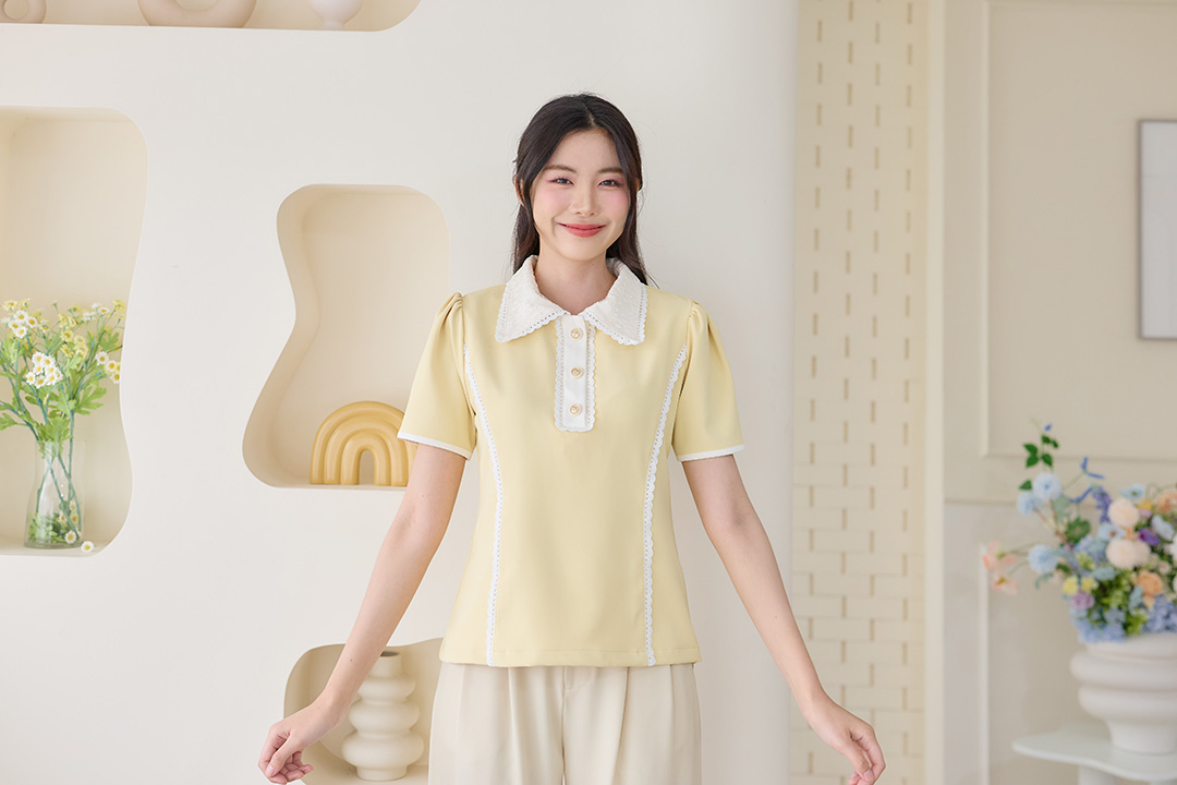 รุ่นนี้สวยหรูยืนหนึ่งเลยค่าา! เสื้อแขนสั้นเข้ารูปสีเหลืองละมุนคอปกครีมแต่งลูกไม้หรูหราสไตล์คุณหนูอังกฤษ ใส่แล้วขับผิวสุดๆ เนื้อผ้าทิ้งตัวใส่สบายม้ากก ดีเทลชนะเลิศทุกจุด ทั้งตีเกล็ดเข้ารูปแต่งลูกไม้หวานๆ ใส่ซับในให้ทั้งตัว และมีซิปข้างใส่ง่ายๆ กระดุมทองใช้งานได้จริง สวยหรูดูแพงไม่ไหวแมทช์ได้ทั้งกระโปรงและกางเกง ได้ฟีลลูกคุณหนู ผู้ดีเป๊ะปัง จะไปทำงานหรือเที่ยวก็เริ่ดทุกสถานการณ์ รีบเอฟด่วนเลยน้าา