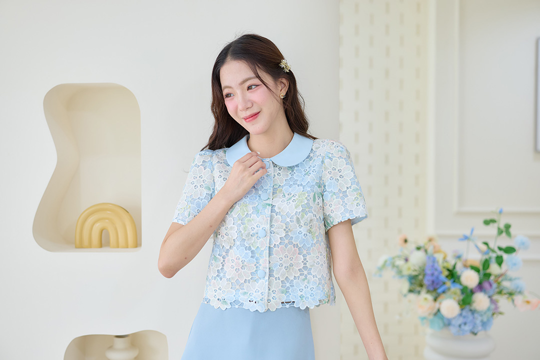 สวยตะโกนนน! เสื้อลูกไม้แขนสั้นคอปกสีฟ้าพาสเทลรุ่นนี้คือเห็นแล้วใจละลายไปเลยค่า สีสวยหวานละมุนตามากก ปริ้นท์ลายสีเขียวสีชมพูบนผ้าลูกไม้คือเข้ากันลงตัวสุดๆ ดีไซน์คอปกบัวสีฟ้าอ่อนคือน่ารักไม่ไหว ใส่แล้วให้ฟีลคุณหนูสายหวาน มีซับในให้ทั้งตัว กระดุมสีฟ้าเรียงหน้า ไม่ว่าจะแมทช์กับกระโปรงสั้นน่ารักๆ/กางเกงก็คือได้ทุกลุค จะไปเที่ยว ทำงานก็คือเอาอยู่! ใครไม่อยากพลาดความคิวท์แบบนี้ ต้องรีบจัดด่วนๆเลยรับรองว่าไม่ผิดหวังแน่นอน