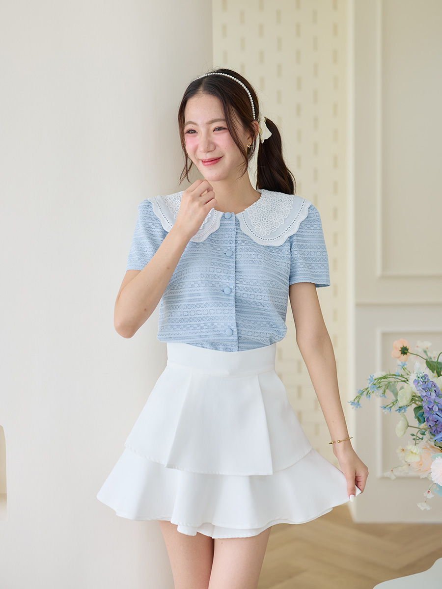 บอกเลยว่าเสื้อตัวนี้คือ Must-Have Item ของซีซั่นนี้เลยน้า เป็นเสื้อแขนสั้นผ้าทอลูกไม้นิ่มๆสีฟ้าพาสเทลคอปกสีขาวคือถูกต้องที่สุด ดีไซน์คอปกบัวลูกไม้ขาวคือที่สุดของความน่ารัก ใส่แล้วดูเป็นสาวหวานใจดี ดีเทลผ้าทอคือสวยมากๆมีเท็กซ์เจอร์ ไม่เรียบเกินไป เพิ่มความแพงให้เสื้อดูไม่ธรรมดา เนื้อนิ่มใส่สบายม้ากและยังมีซับในให้อีก ใส่ไปทำงานหรือไปเที่ยวก็คือได้หมด ใครที่กำลังมองหาเสื้อเรียบๆที่ใส่ได้บ่อยๆ ต้องจัดตัวนี้เลย รีบตำด่วนเลยน้าาาา!