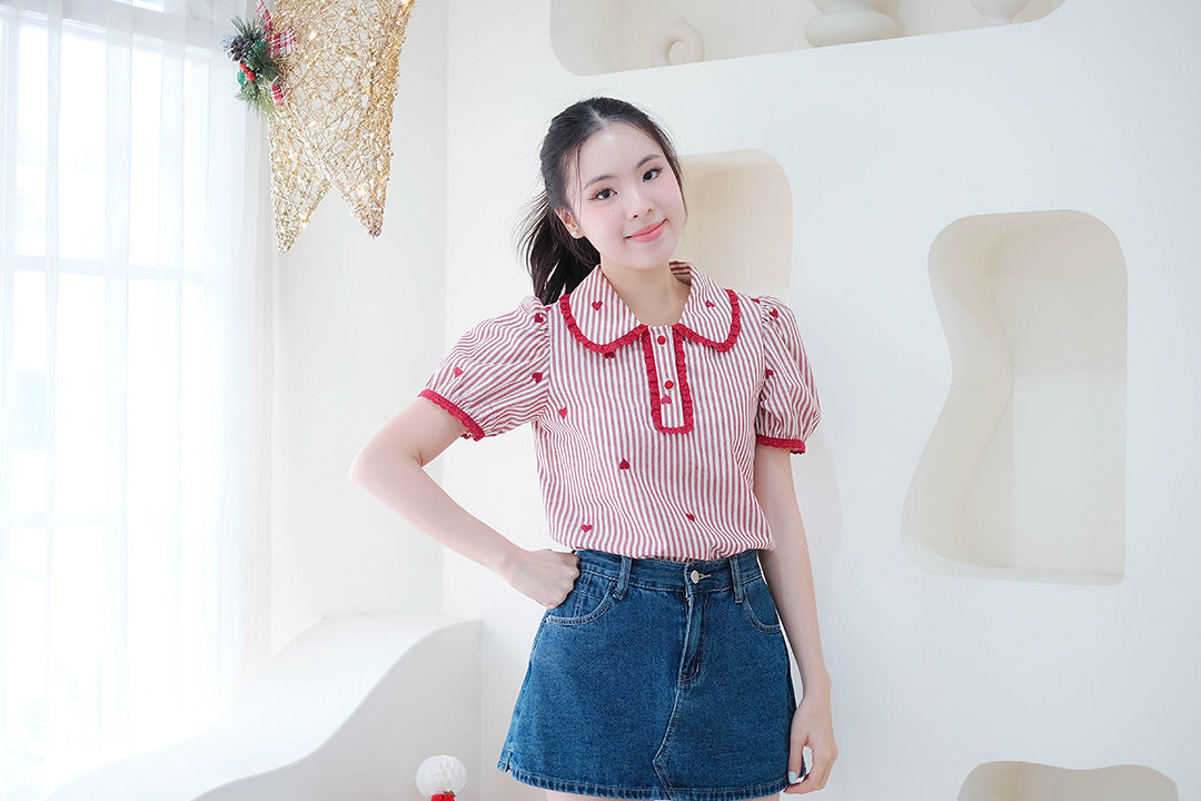 เสื้อตัวนี้คือที่สุดของความน่ารักเกินเบอร์ไปมากแขนสั้นคอกลมที่แบบคุณหนูสุดๆผ้าทอลายริ้วสลับสีฟ้า-ขาวคือลงตัวสุดมีลูกเล่นตรงขอบคอแต่งลูกไม้ มีซับในทั้งตัวกระดุมปั๊มสีทองเรียงหน้าแบบดูแพง ดูหรู ชายเสื้อคือเค้าทำเป็นระบายๆฟรุ้งฟริ้งแถมมีลูกไม้ตัดขอบอีกนะคือเป็นความใส่ใจในดีเทลที่ทำให้เสื้อตัวนี้ไม่เหมือนใครจริงๆ จะไปคาเฟ่ ไปเดินเล่น หรือไปเดทก็คือปังไม่ไหว ไม่มีคือพลาดมาก เสื้อตัวนี้คือต้องมีติดตู้ไว้เลยนะตัวเธอ Must-have สุดๆ