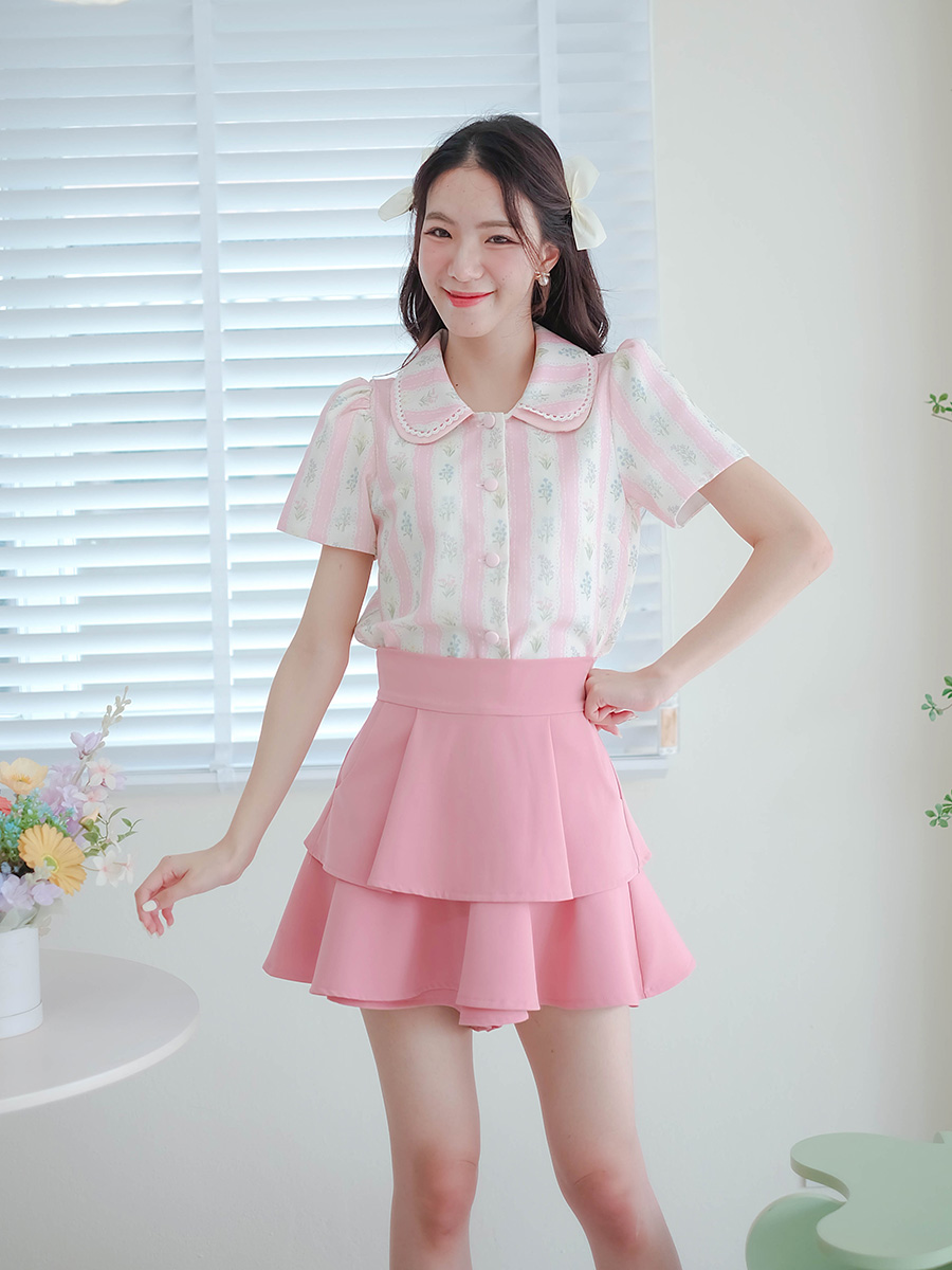 เสื้อตัวนี้คือที่สุดของความน่ารักแบบวินเทจ!ลายผ้าเป็นลายทางสีชมพูสลับกับลายดอกไม้เล็กๆ ให้ความรู้สึกวินเทจแต่ก็ยังดูทันสมัย คอปกใหญ่แบบปีเตอร์แพน 2 ชั้น มีขอบลูกไม้ถัก เสื้อเป็นแบบกระดุมเรียงหน้า พร้อมดีเทลเชือกผูกโบว์ตรงอกเพิ่มความหวานได้อีกสิบระดับ และที่เริ่ดกว่านั้นคือ มีซับในทั้งตัว ใส่สบายสุดๆ เหมาะกับใส่ไปคาเฟ่สวนดอกไม้ ให้ลุคที่ดูสดใส มีเสน่ห์แบบไม่ซ้ำใคร ใครชอบเสื้อที่น่ารักแบบมีดีเทล ต้องจัดเลย รับรองไม่ผิดหวังแน่นอน!