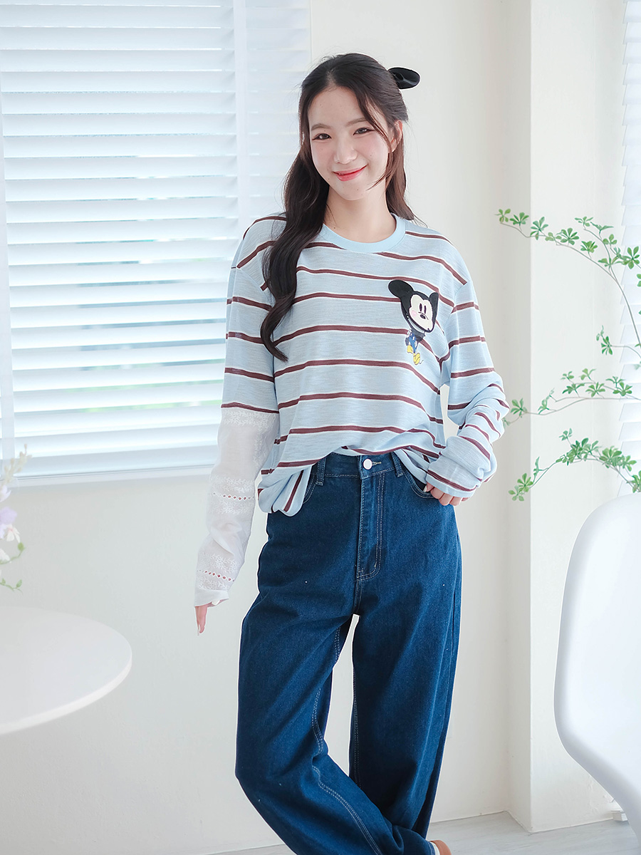 กรี๊ดดด! ใครสาวกมิคกี้เมาส์ต้องมีตัวนี้ เสื้อแขนยาวสุดคิ้วท์ที่น่ารักเกินต้าน ดีไซน์เสื้อลายทางคลื่นๆ สีฟ้า-น้ำเงินสุดเก๋ มาพร้อมดีเทลน้องมิคกี้เมาส์ปักนูนสุดคิ้วท์ที่หน้าอก ที่พีคกว่านั้นคือแขนเสื้อที่ไม่เหมือนกัน! ข้างหนึ่งเป็นลายทาง อีกข้างเป็นผ้าสีขาว ทรง Oversize ใส่สบายสุดๆ แมทช์ง่ายมาก ได้ลุคที่ดูสนุกสนานแต่ก็มีสไตล์สุดๆ เป็นไอเทมที่ควรมีติดตู้ไว้เลยจริงๆ ใส่เมื่อไหร่ก็ไม่เบื่อแน่นอน