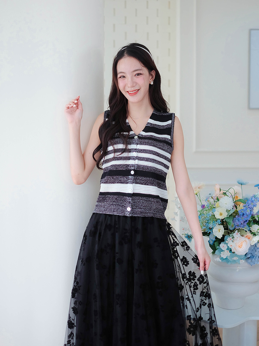 มาเติมความเก๋ให้กับลุคกันหน่อย เสื้อกั๊กตัวนี้คือดีไซน์น่ารักมากเป็นเสื้อถักลายทางสีขาวดำที่แมทช์ได้ง่ายสุดๆจะใส่เดี่ยวๆหรือใส่คลุมทับเสื้อยืดก็ได้ลุคชิคๆไม่ซ้ำใครดีเทลแต่งกระดุมด้านหน้าทำให้ใส่ได้หลายแบบ จะติดกระดุมหมดทุกเม็ดเพื่อความเรียบร้อย หรือจะปลดกระดุมโชว์เสื้อด้านในก็เก๋ไม่เบาเลยค่ะเนื้อผ้าใส่สบาย ไม่ร้อน เหมาะกับอากาศบ้านเราสุดๆจะใส่ไปเที่ยว ไปคาเฟ่ หรือไปเดทก็คือปังไม่ไหวใครที่ชอบแต่งตัวสไตล์เกาหลี ต้องรีบจัดเลย! ของมันต้องมีติดตู้จริง ๆ ค่ะ