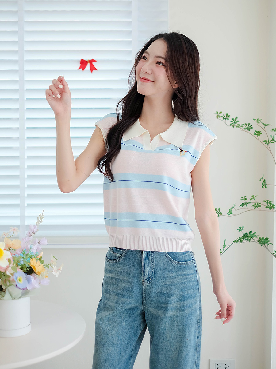 ลุคคุณหนูสุดคิ้วท์ เสื้อกั๊ก Preppy Style ที่ต้องมีติดตู้ คอปกสไตล์โปโลดีไซน์มาในโทนสีพาสเทลสุดละมุนทั้งสีชมพูและฟ้าตัดสลับกับลายริ้วสีน้ำเงินเข้มและปกเสื้อสีครีม เป็นคู่สีที่ลงตัวสุดๆ ใส่แล้วขับผิวให้ดูไบร์ทขึ้นทันที เนื้อผ้าไหมพรม(Knit)นุ่มนิ่ม ใส่สบาย ไม่ว่าจะใส่ในวันอากาศร้อนๆ หรือในห้องแอร์ก็เอาอยู่ แถมยังมีดีเทลปักลายการ์ตูนเล็กๆ ที่มุมอก เพิ่มความกิมมิคที่ไม่เหมือนใคร แมทช์ง่าย ใส่เดี่ยวๆ หรือเลเยอร์ทับเสื้อเชิ้ตก็สวยจบ ะใส่ไปคาเฟ่ ไปเรียน หรือไปเที่ยวในวันหยุด ตัวนี้ตัวเดียวเอาอยู่แน่นอน