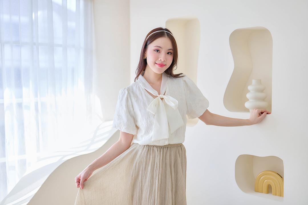 ใส่แล้วดูเป็นสาวหวาน คุณหนูสุดๆ เนื้อผ้าไม่หนาไม่บางเกินไป ใส่สบาย ไม่ร้อน จะใส่ไปคาเฟ่ ไปออกเดท หรือไปงานเลี้ยงแบบชิลล์ๆ ก็คือได้หมด แมทช์กับกางเกงขาสั้นสีขาว หรือกระโปรงทรงสวยๆก็คือปังแน่นอน รับรองว่าตัวนี้ใส่แล้วมีแต่คนทัก ช้อปเลย!