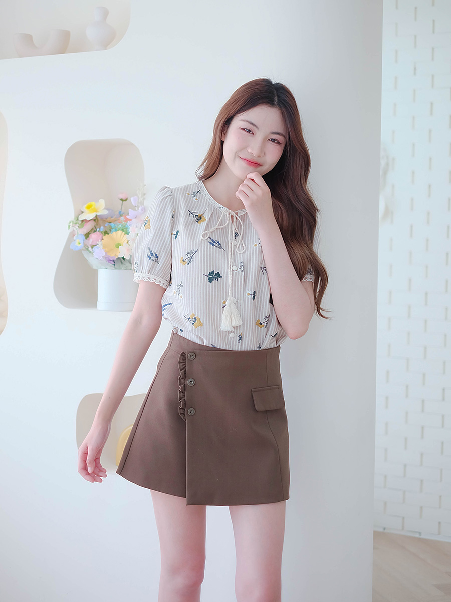 เสื้อลายทางดอกไม้สุดคิ้วท์สวยหวานละมุนใจสีเบจ-ขาวสุดคลาสสิกแต่เพิ่มความน่ารักด้วยดีเทลลายปักดอกไม้สีสันสดใสทั่วทั้งตัว มาพร้อมดีเทลผูกเชือกสุดเก๋ที่ปลายเชือกมีพู่เล็กๆเพิ่มลูกเล่นให้เสื้อดูมีสไตล์ไม่เหมือนใคร คอเสื้อและปลายแขนแต่งด้วยลูกไม้ถักสีขาว ทำให้เสื้อดูหวานขึ้นไปอีก มีซับในช่วงตัวทำให้ใส่สบายไม่ต้องกังวลเรื่องความบางเลย ไปเที่ยวคาเฟ่แมตช์กับกางเกงยีนส์ขาสั้นหรือกระโปรงตัวโปรดก็จะได้ลุคที่ดูน่ารักถ่ายรูปขึ้นกล้องแน่นอน รับรองว่าสวยปัง รีบกดใส่ตะกร้าเลยจ้า