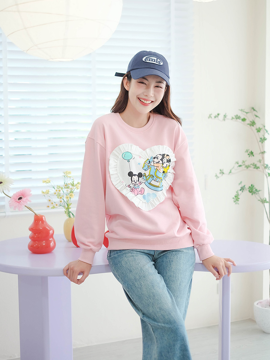 เสื้อสเวตเตอร์สุดคิ้วท์ใส่แล้วน่ารักแบบตะโกนสีชมพูละมุนๆดีไซน์ไม่ซ้ำใครตรงกลางเป็นลายสกรีน Mickey Mouse และ Minnie Mouse สุดคิ้วท์อยู่ในกรอบหัวใจสีขาวที่มีระบายลูกไม้ล้อมรอบตัวเสื้อเป็นทรง Oversize ใส่สบาย เนื้อผ้านุ่มนิ่ม ใส่ได้หลายโอกาส จะใส่ไปเที่ยวชิลล์ๆหรือใส่ในห้องแอร์ก็คือได้หมด ใส่คู่กับกางเกงยีนส์ขายาวหรือกางเกง Jogger ก็ได้ลุคสบายๆ ช้อปเลย รับรองว่าได้ไปแล้วจะเลิฟเลย